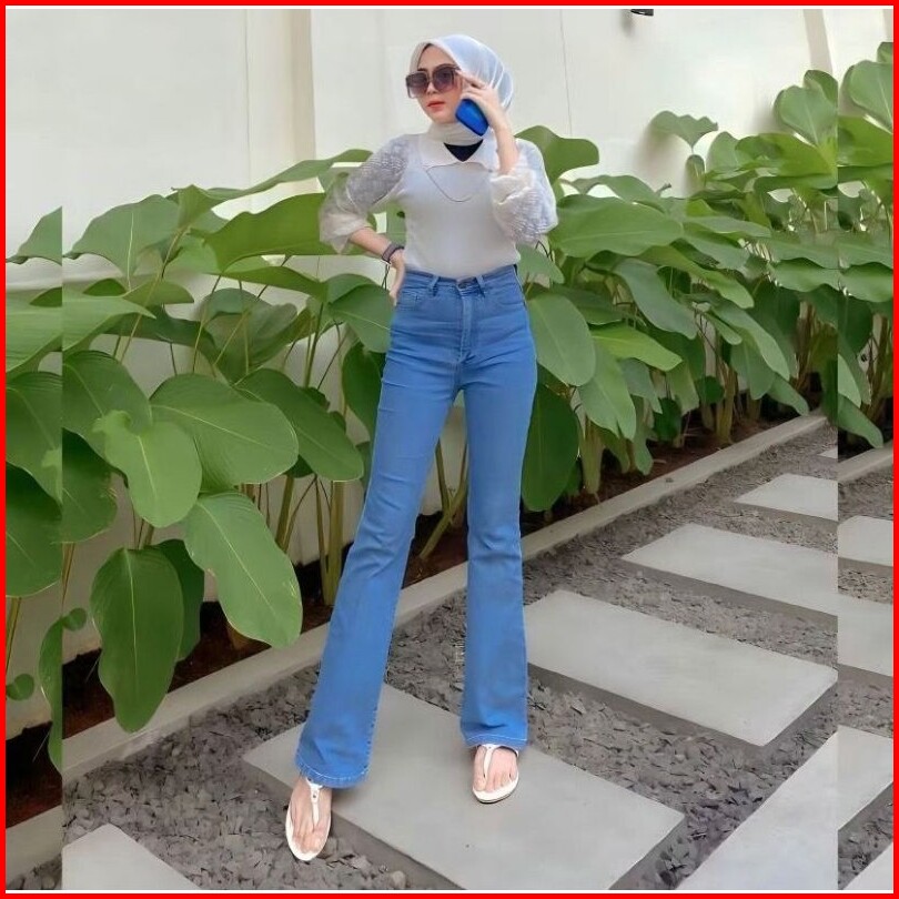 Celana Jeans Cutbray Highwaist Streach Wanita Loose Kekinian Ukuran Standar Sampai Super Jumbo
