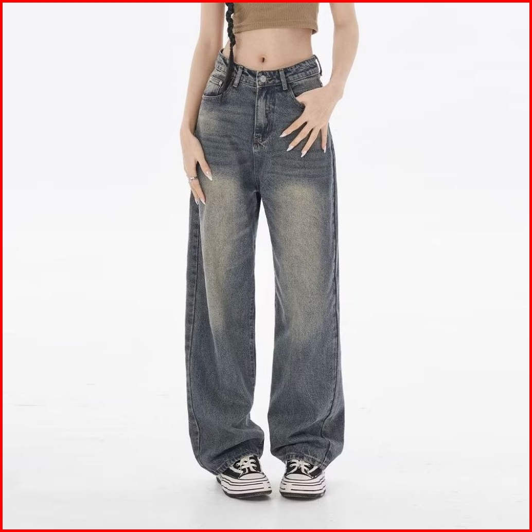 Celana Kulot Jeans Wanita Biru Retro Highwaist Model Loose Oversize