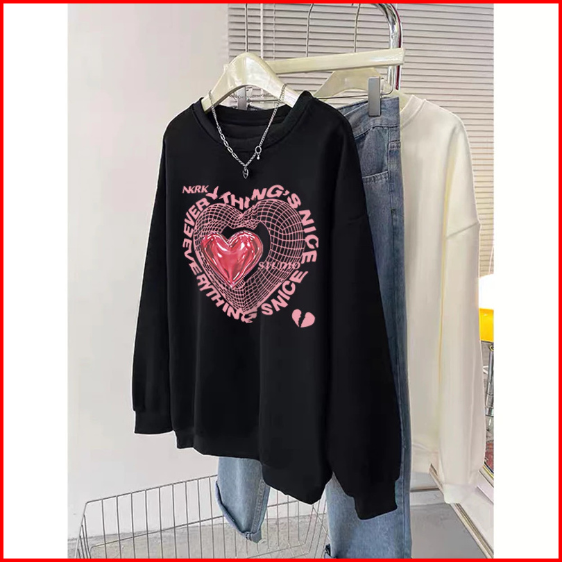 Tf - Everything S Nice Love Korean Style Sweatshirt Wanita Remaja Sweater Lengan Panjang Oversized