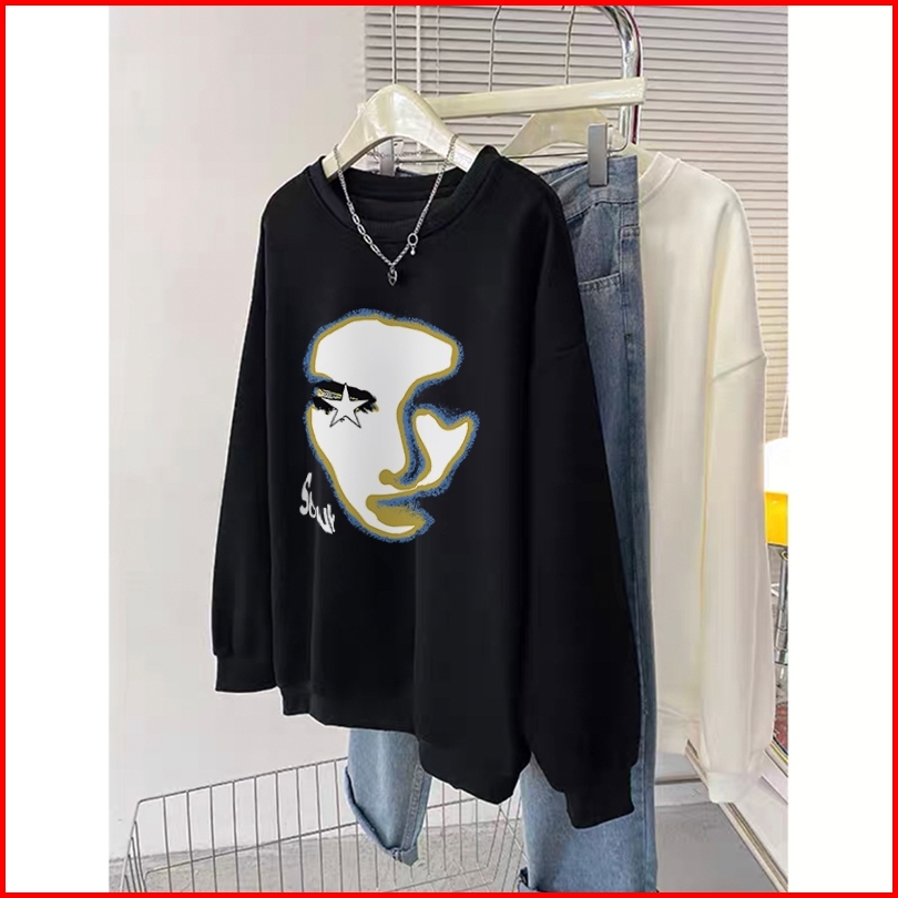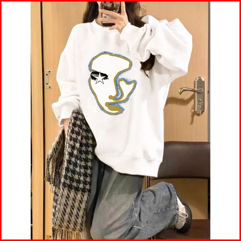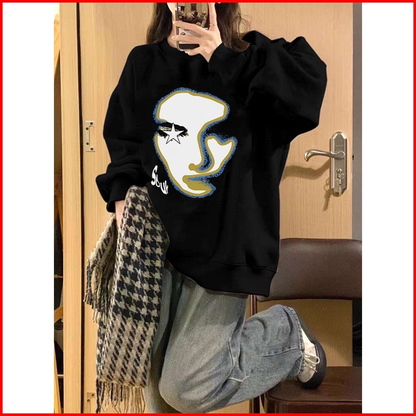 Forteid A1054 Sweater Lengan Panjang Wajah Potret Seni Retro Gaya Korea Sweater Pendek Pakaian Wanita Sweater Wanita Swe