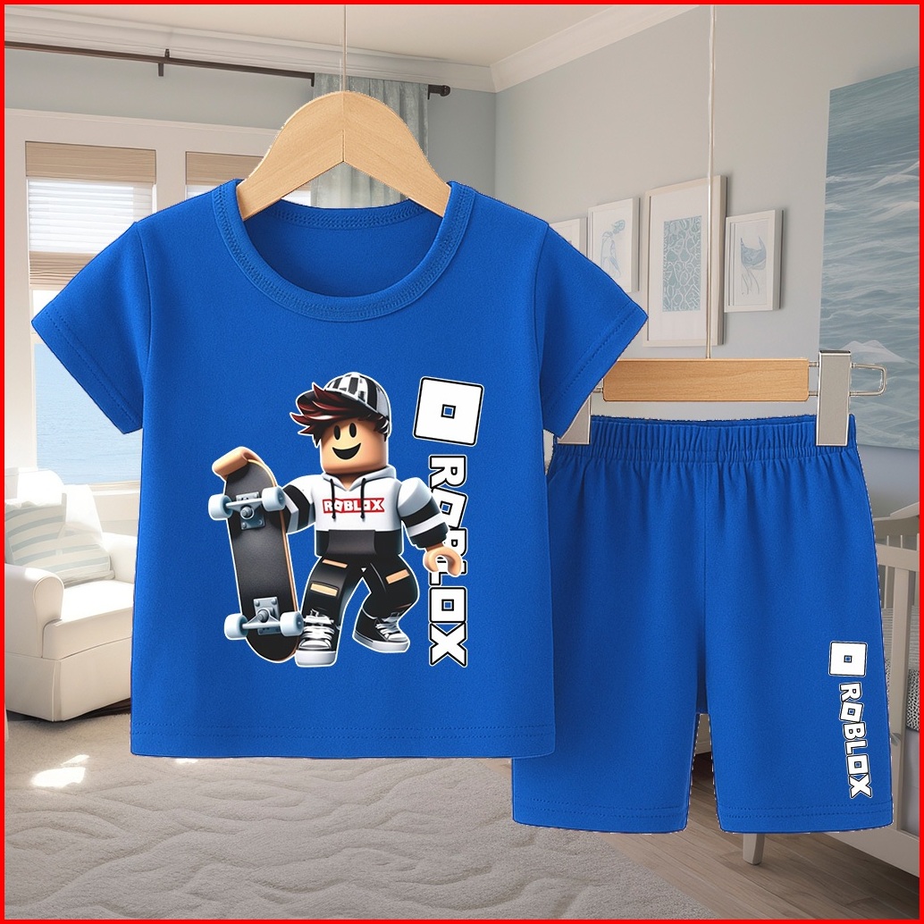 Baju Anak Gambar Roblox Setelan Celana Pendek Lengan Pendek Anak Laki Laki Usia 1-10 Tahun 2020