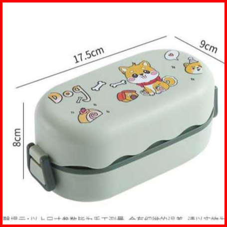 Lunch Box Bento Kapasitas 850 Ml Karakter Dog Kotak Bekal Lapisan Ganda 2 Sekat Free Sendok Garpu Kode Hx 53414