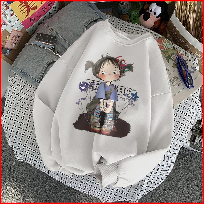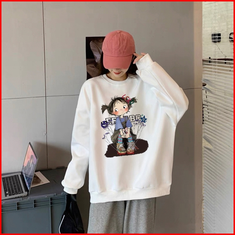Forteid Sweater Lengan Panjang Oversized Street Style Korean Style Switer Wanita Oversize Kaos Cetak Kartun Gadis Bereko