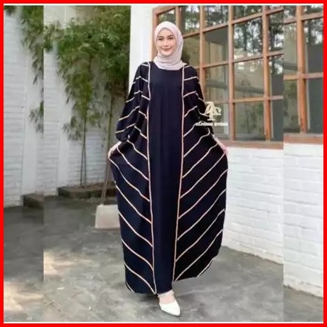 Gamis Kaftan Motif Lula Ld 180 Cm Premium Rayon Super Jumbo Adem Untuk Sehari - Hari Atau Pengajian Kaftan Hitam Putih
