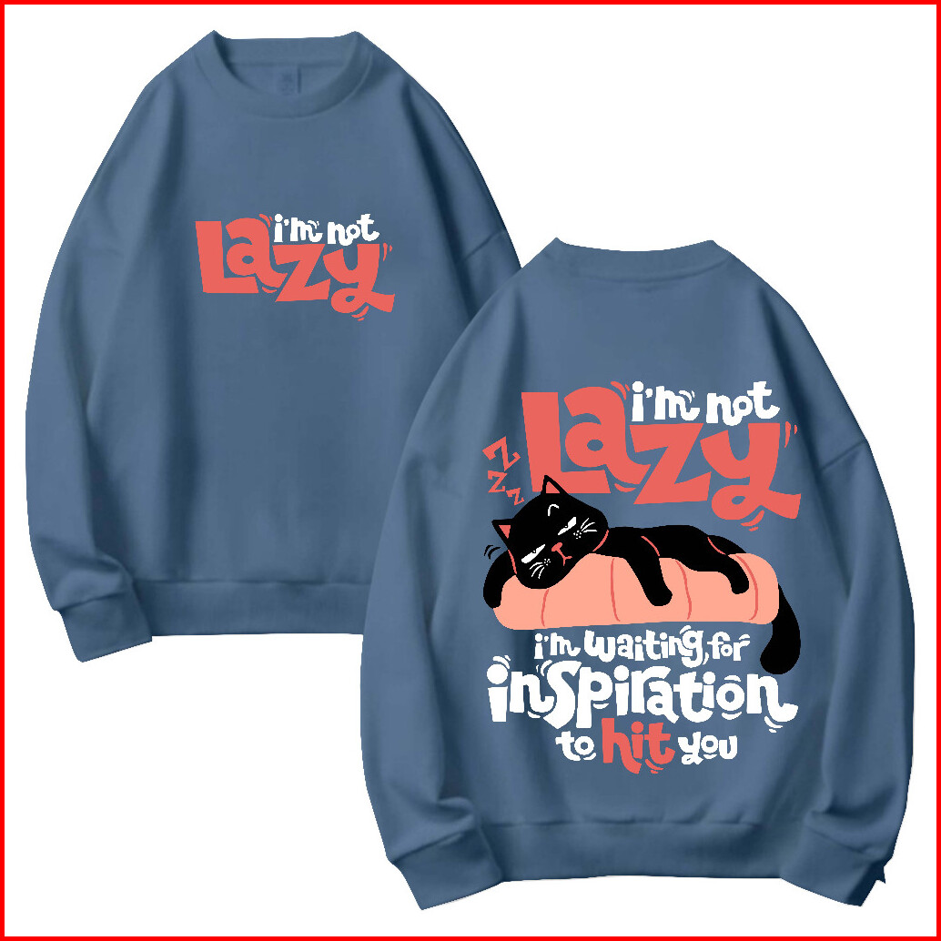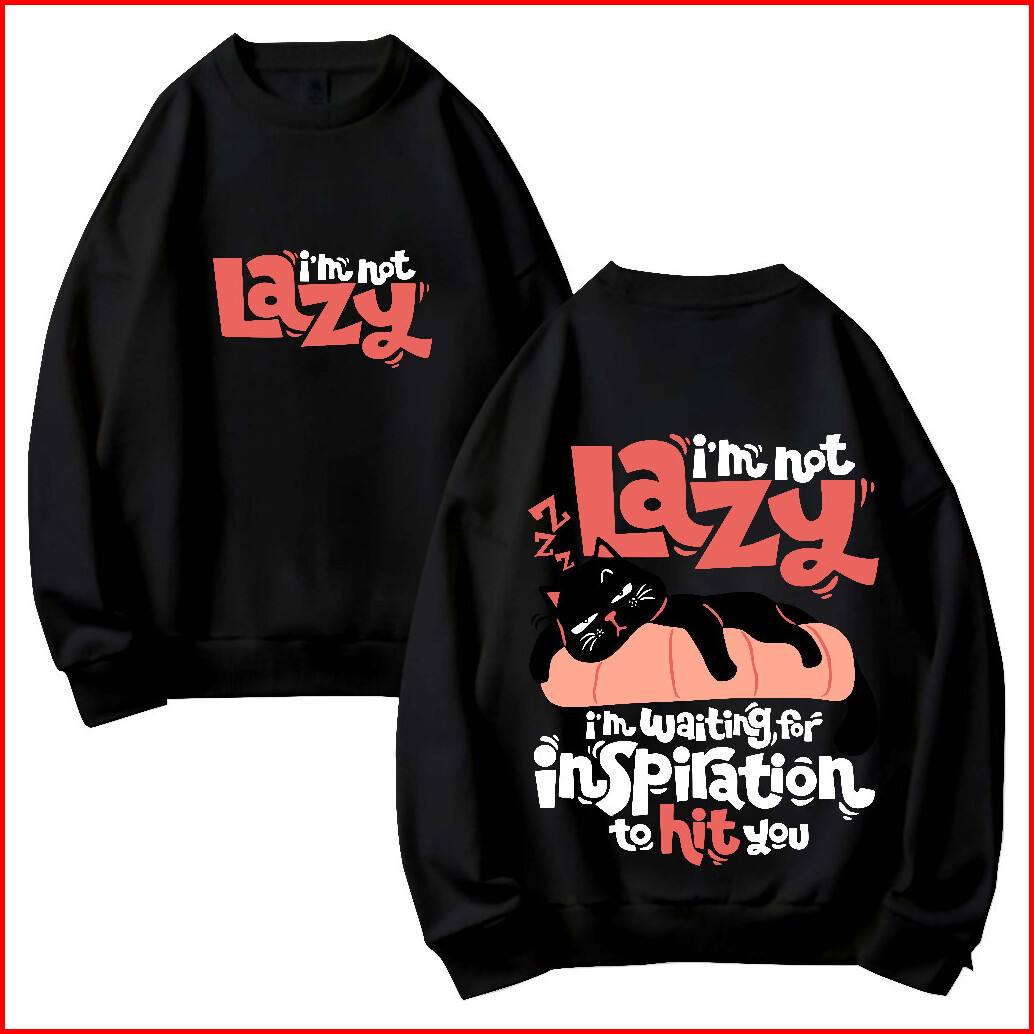 Crewneck Sweater Jyb Oversize Im Not Lazy Sablon Size M-xxl Pria Wanita