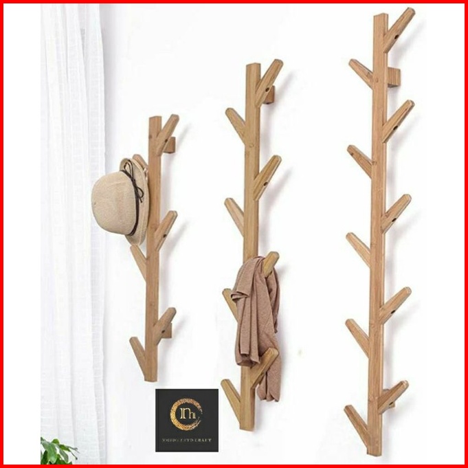 Gantungan Baju Dinding Hanger Kayu Holder Topi Handuk Baju