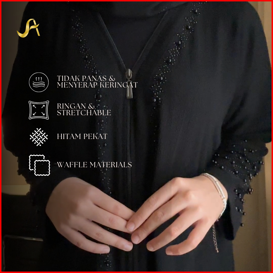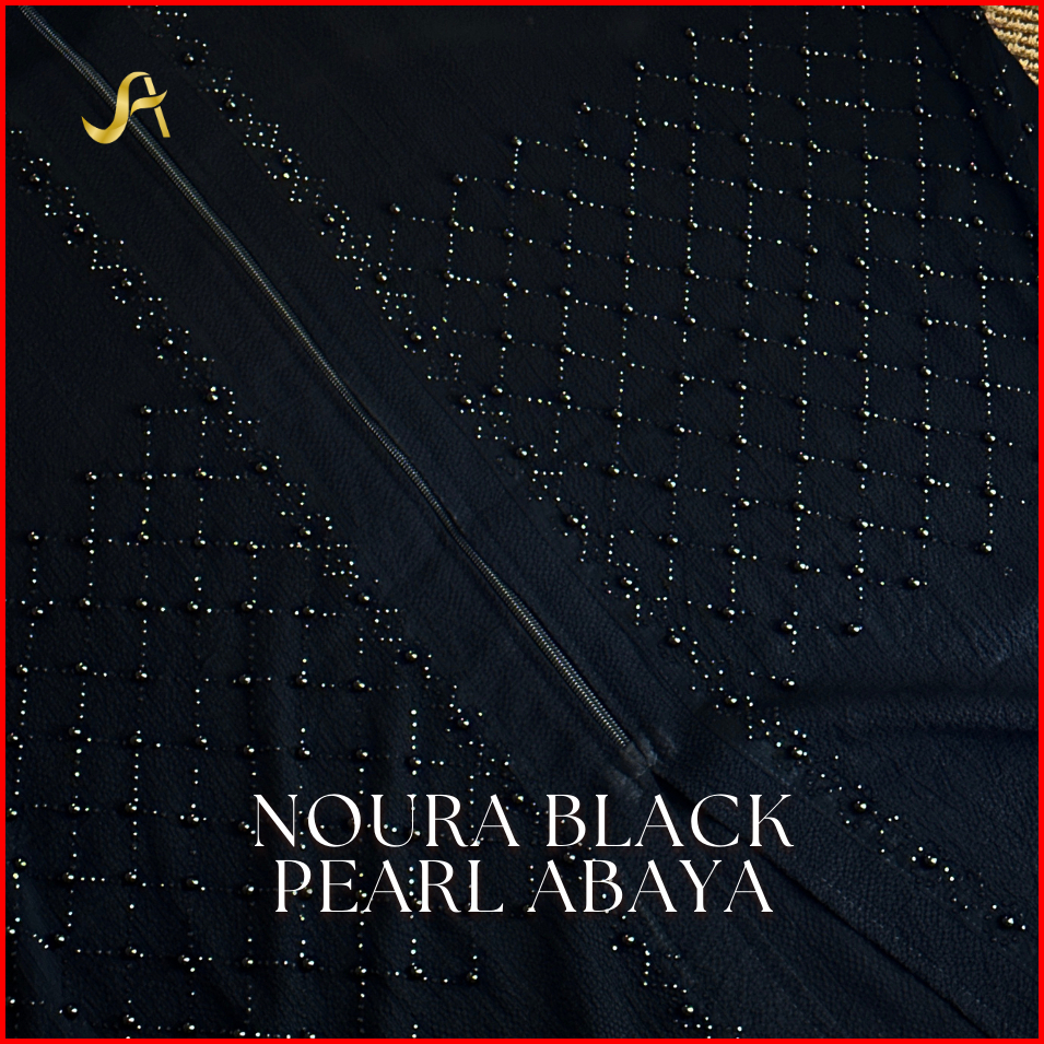 New Noura Black Pearl Abaya With Zipper Elegant