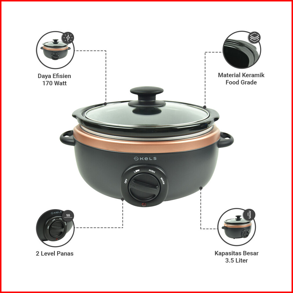 Kels 3.5 Ltr Havana Slow Cooker - Hitam Alat Masak Kuah Sup Elektrik Peralatan Masak Perlengkapan Dapur Slow Cooking