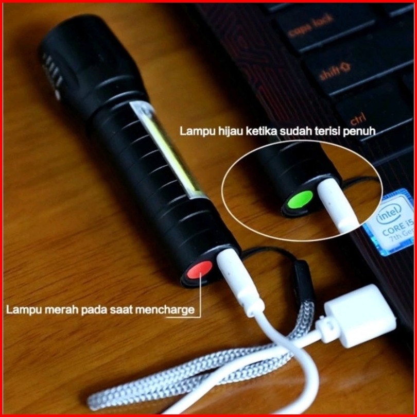 Senter Mini Swat Led Bisa Zoom Lampu Mini Flashlight Usb Charger Box 3 Mode Waterproof Senter Camping Mancing