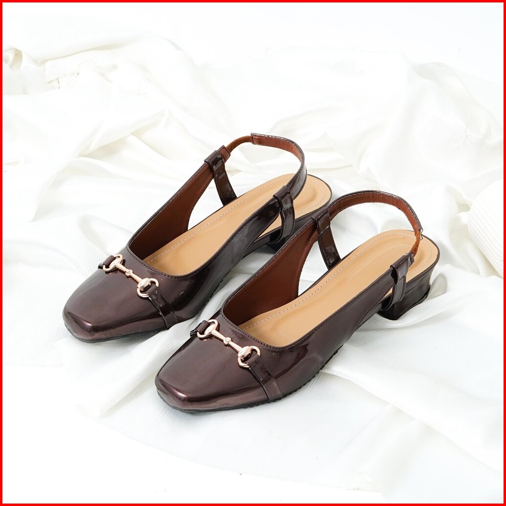 Morilovy Sandal High Heels Mules Wanita Slop Tali Belakang Hak 3 Cm Elegan Kekinian Terbaru Ib 35