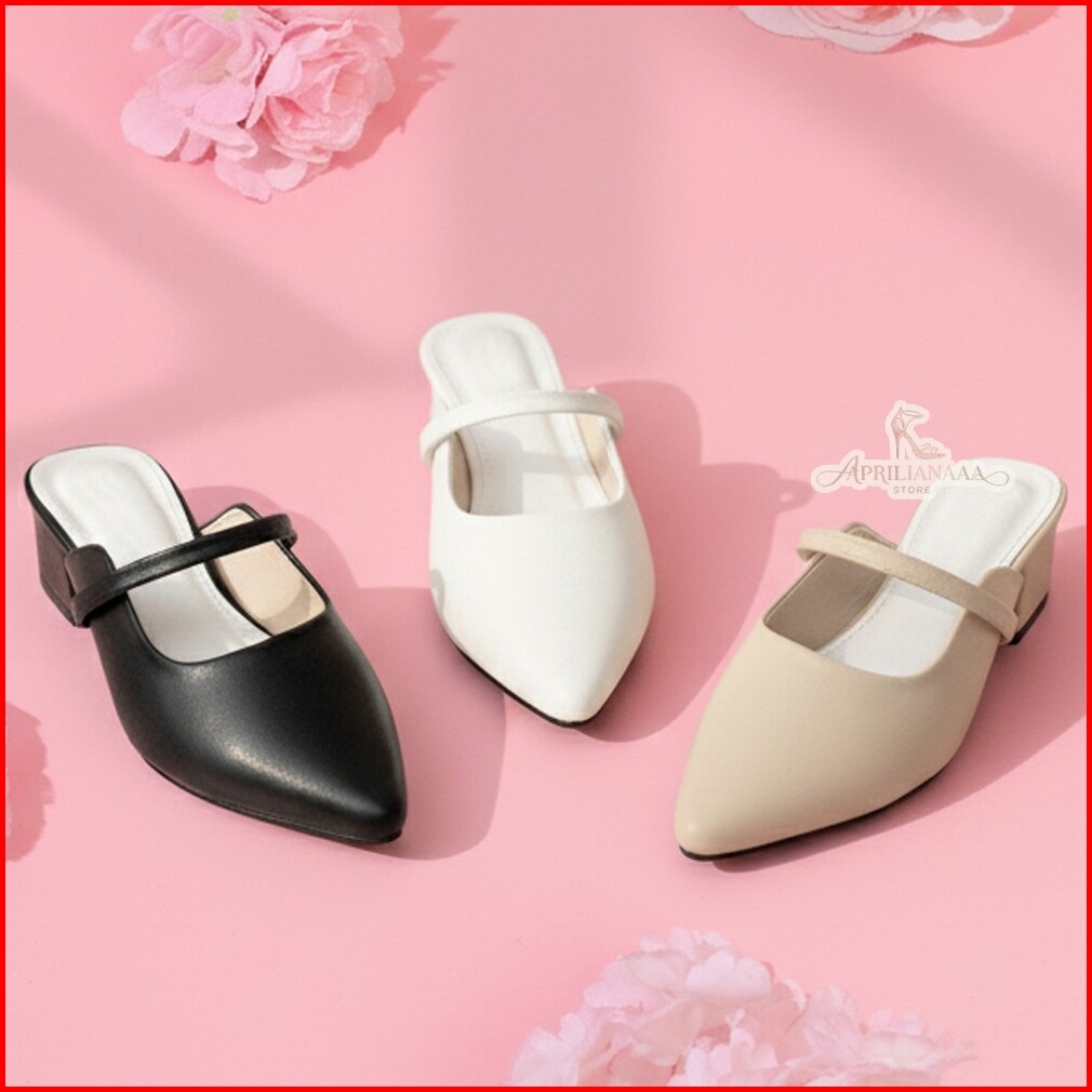 Sandal Mules Slop Wanita Model Korea Hak 3cm Elegan Polos Slip On Casual Nyaman Untuk Acara Dan Pesta Sendal Santai Cewe