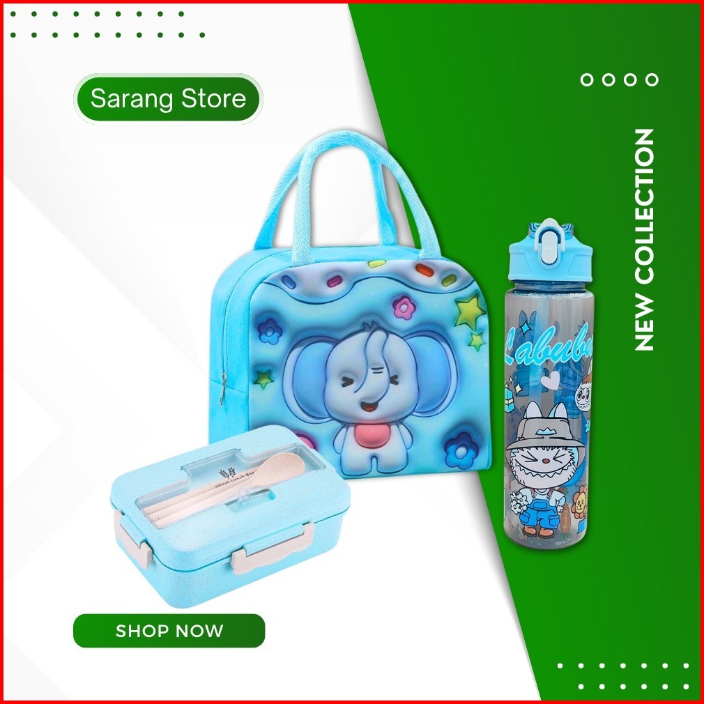 Kotak Bekal Anak Sekolah Tempat Makan Set Botol Minum Tas Bekal Karakter Anti Tumpah
