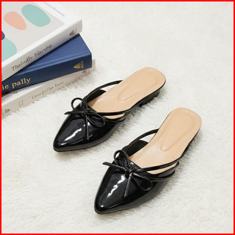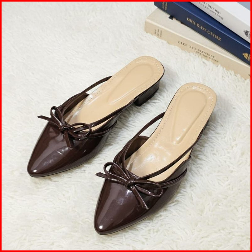 Heels Wanita Glossy Hak 3cm - Sandal Wanita Model Selop Slip On Elegan Tali Pita Darabeuaty