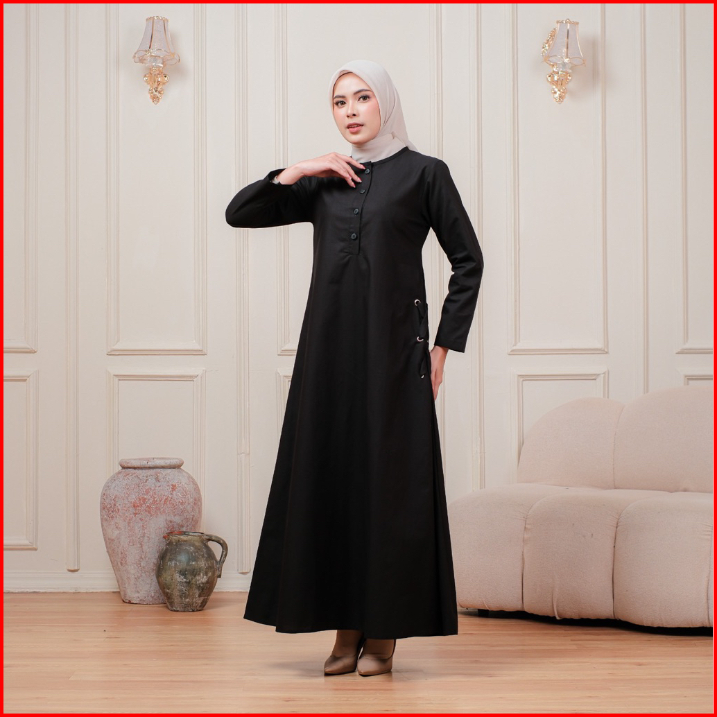Gamis Dress Dewasa Busui Lengan Panjang Muslimah Bahan Katun Cigaret Isma