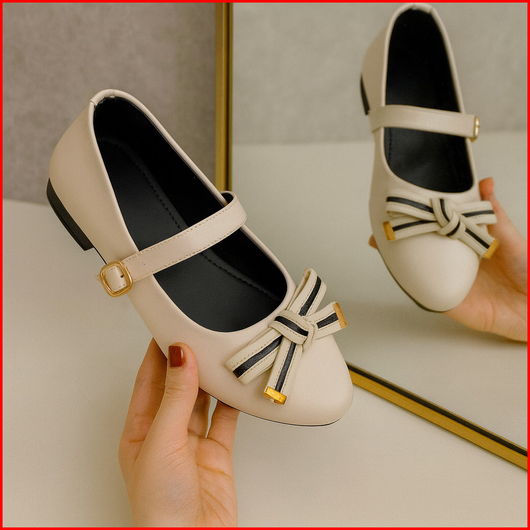 Sepatu Flat Wanita Pita Simple Elegan Flat Shoes Casual Kekinian Sepatu Balerina Wanita Lembut Anti Slip Flat Shoes Hari
