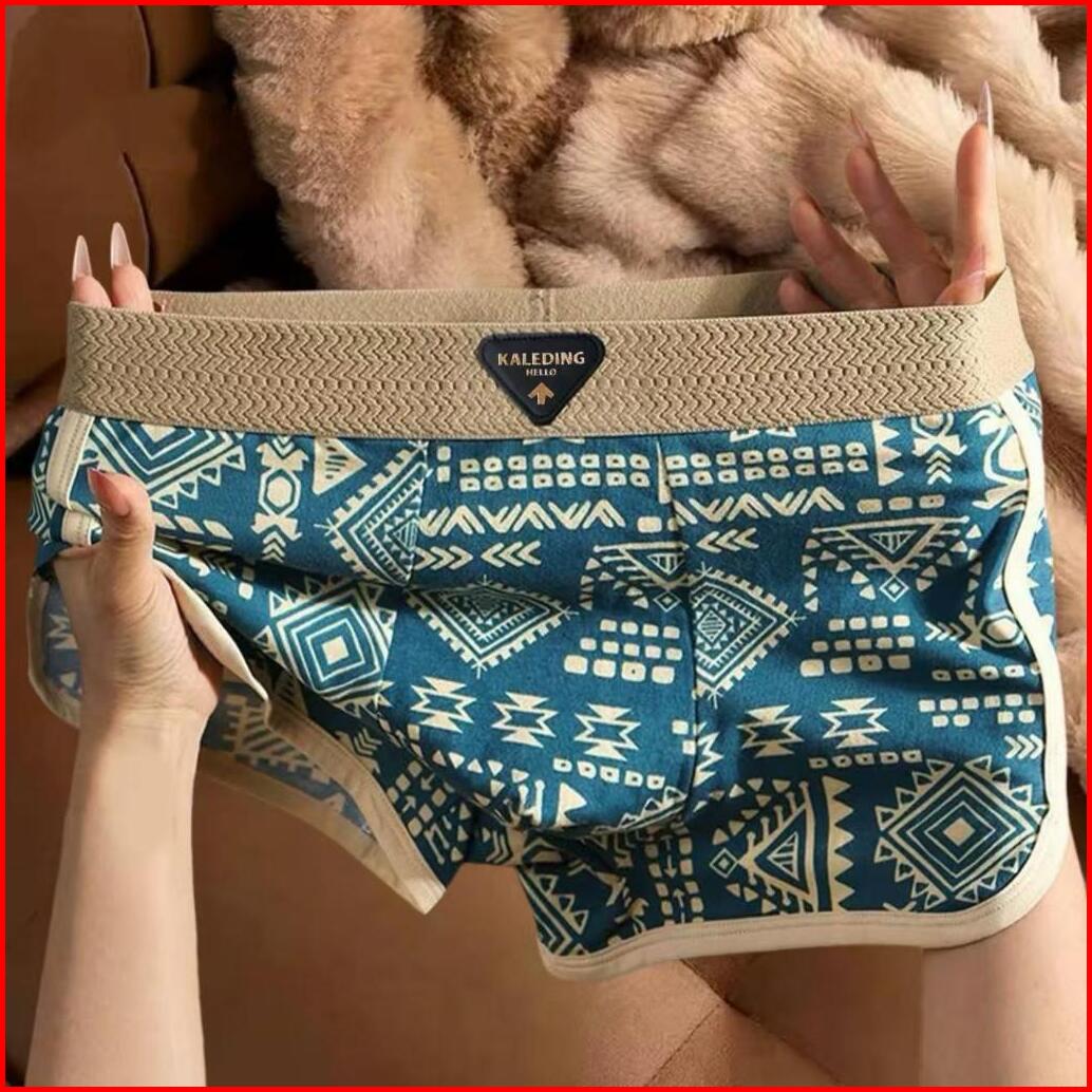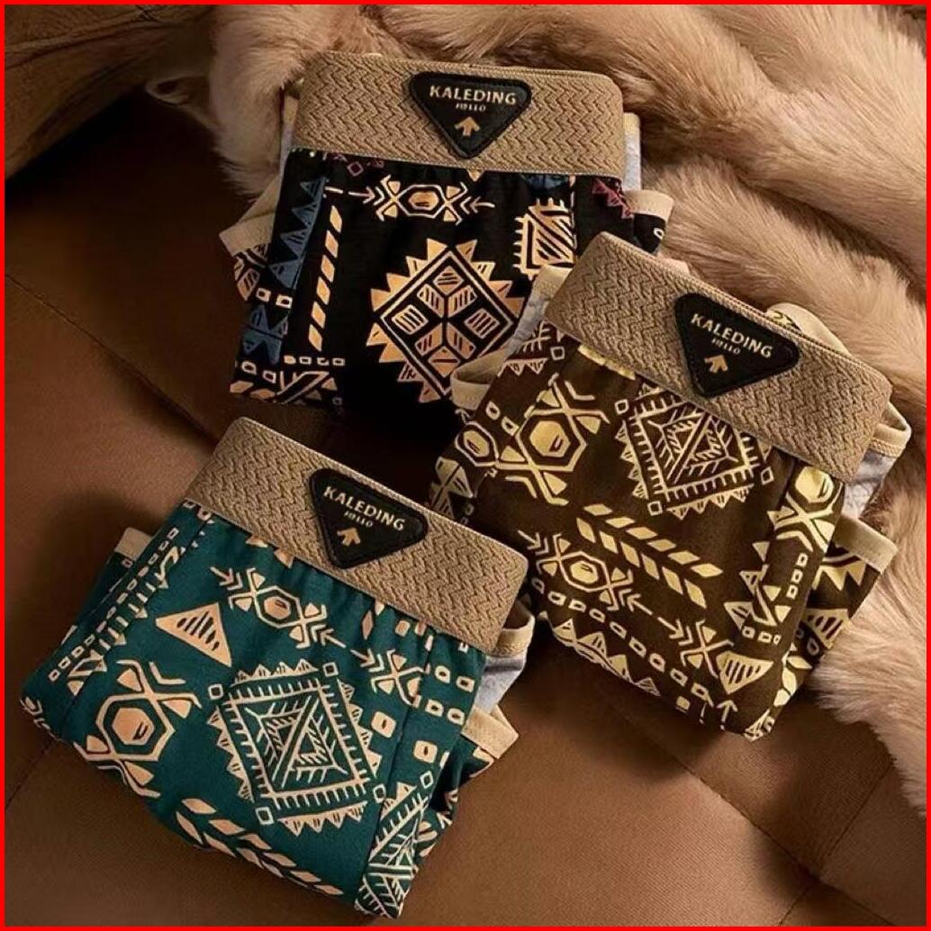 Vimisu1 Celana Dalam Pria Gaya Etnik Retro Celana Boxer Pria Celana Pendek Boxer Serat Poliester Yang Bernapas