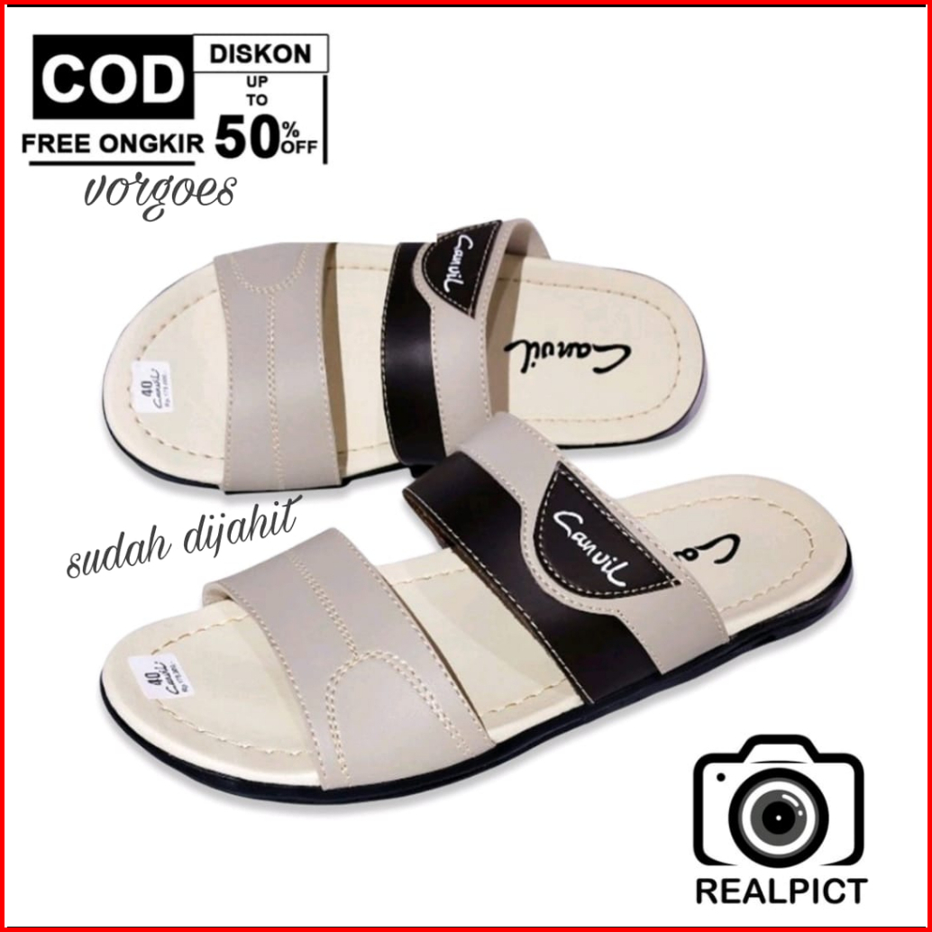 Sandal Kulit Casual Carvil Sandal Cowok Sendal Slop Sendal Pria Slip On Sendal Slop Am.04