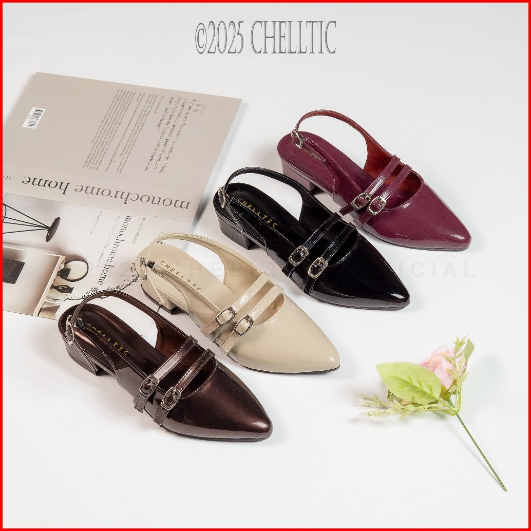 Mules Wanita Heels 3cm Kekinian Terbaru Sepatu Perempuan Korea Warna Burgundy Tersedia Ukuran 37-40 Selop Cewek Elegan M