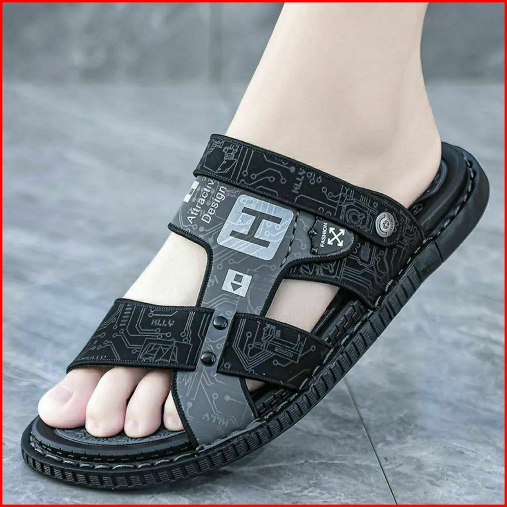 Sandal Kulit Sintetis Pria Premium Eg01322 Sol Anti Slip Dan Anti Licin Casual Kekinian Terbaru