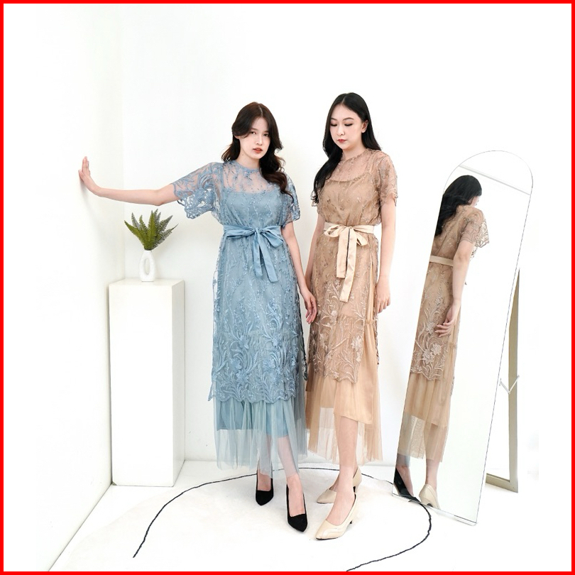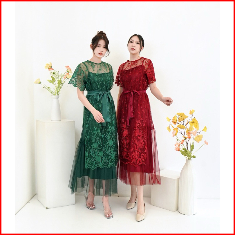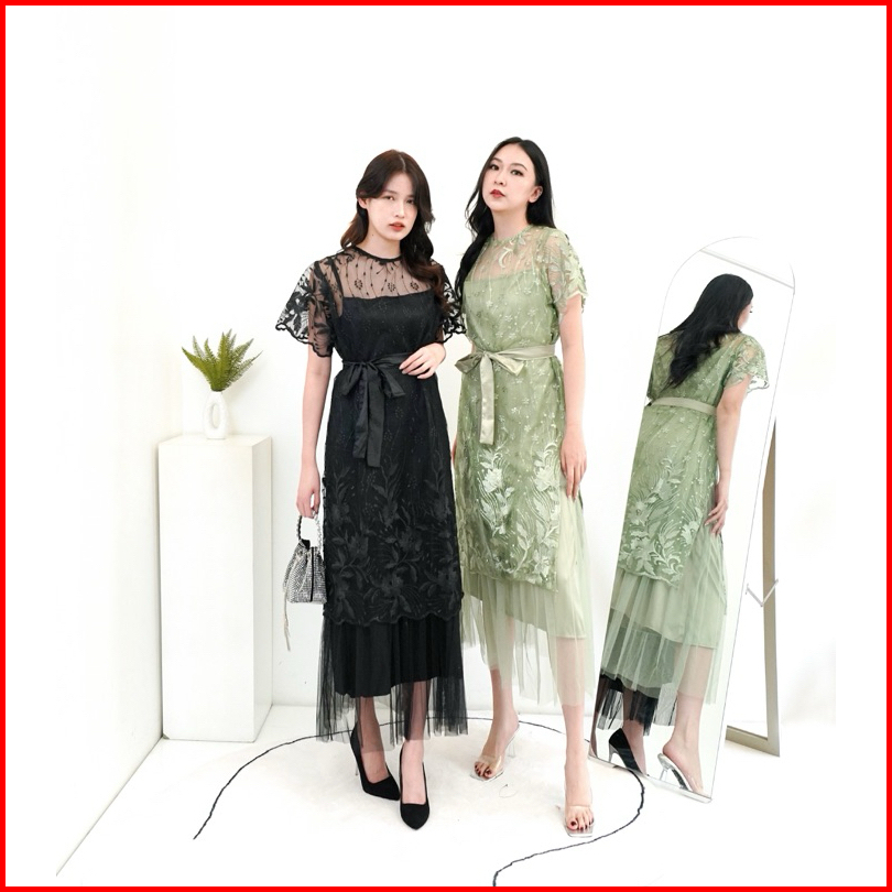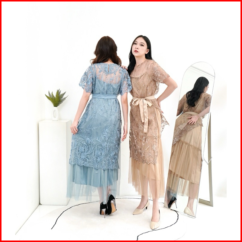 Nadeliene Dress Natalia Real Pict Premium Dress Kondangan Party Dress Formal Gaun Panjang Mewah Natal Casual Wanita Hita