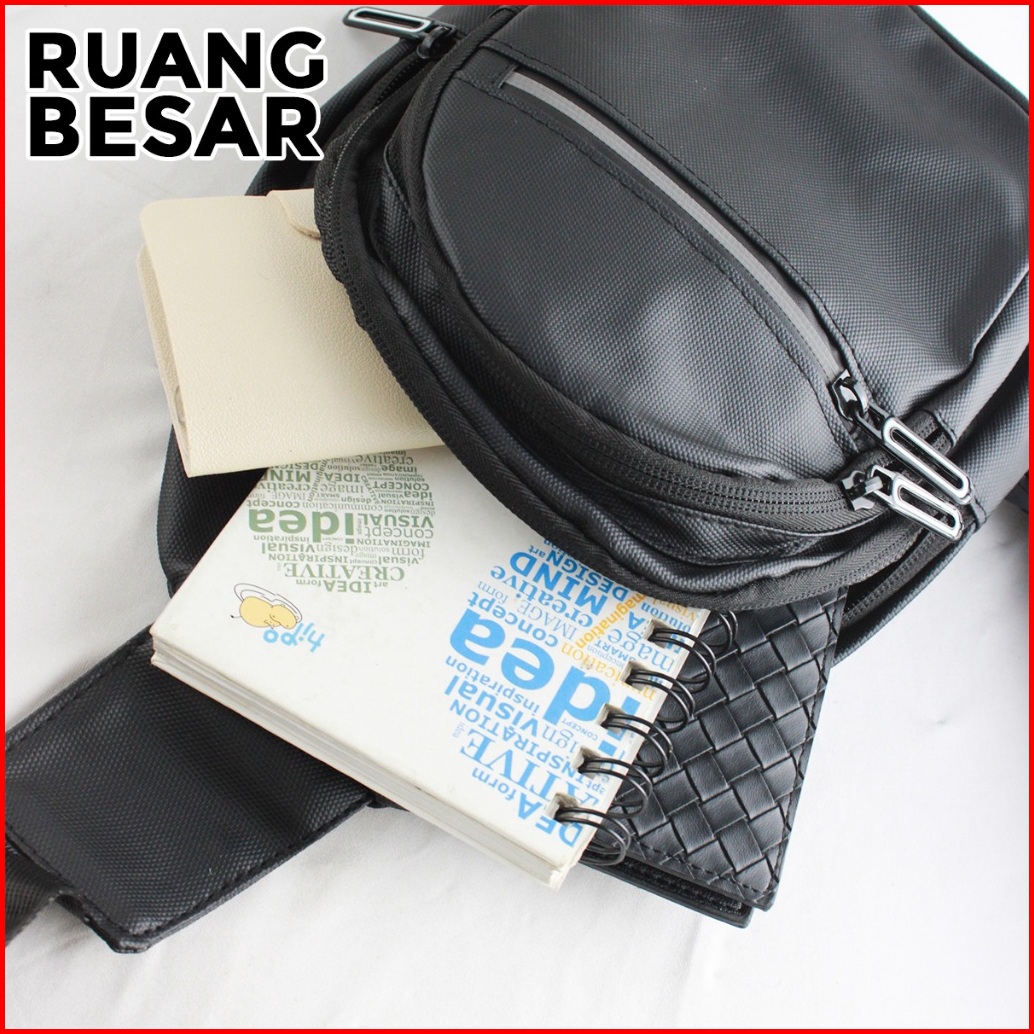 Tas Slingbag Fashion Pria Tas Selempang Polos Bahu Lubang Earphone Waterproof Terbaru - Lw 14
