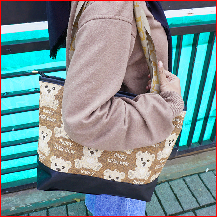 Tas Totebag Wanita Motif Boneka Tas Jinjing Happy Title Bear Termurah New Collection Wy 9