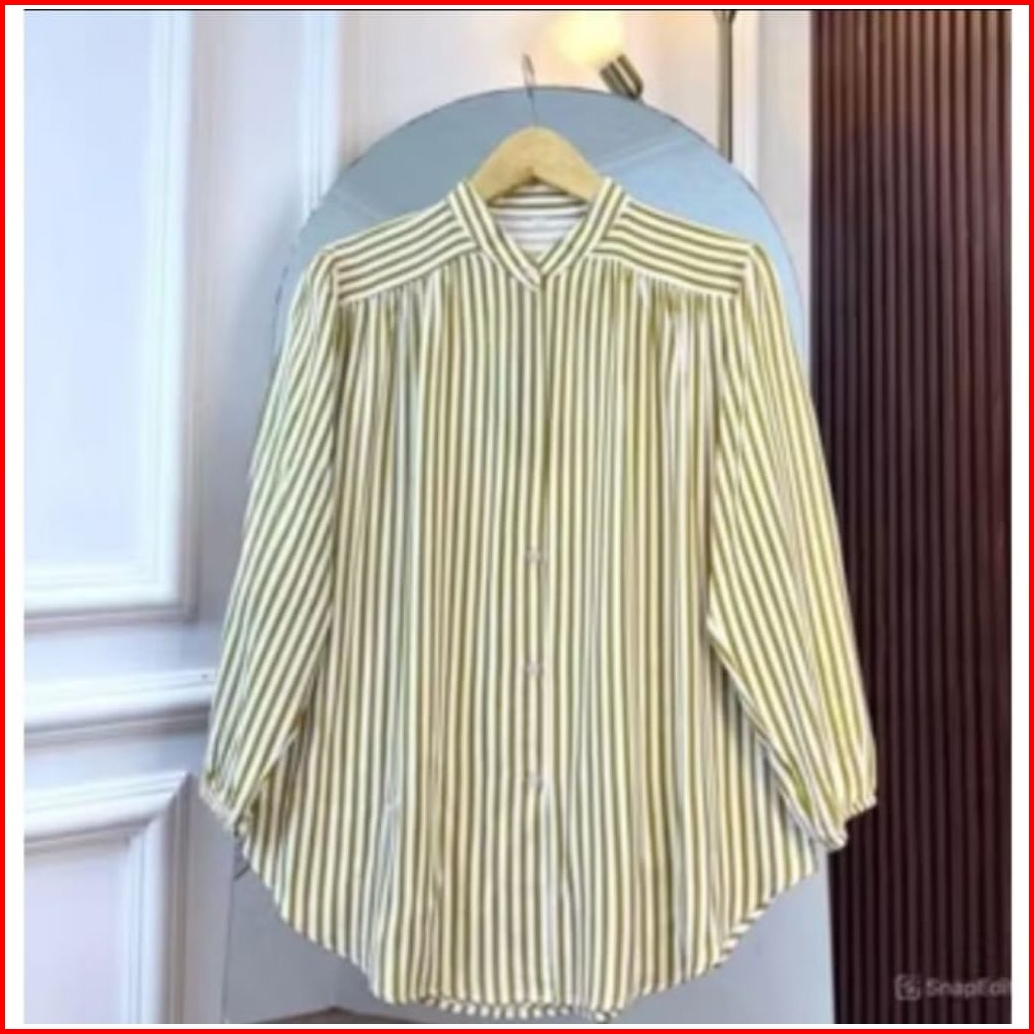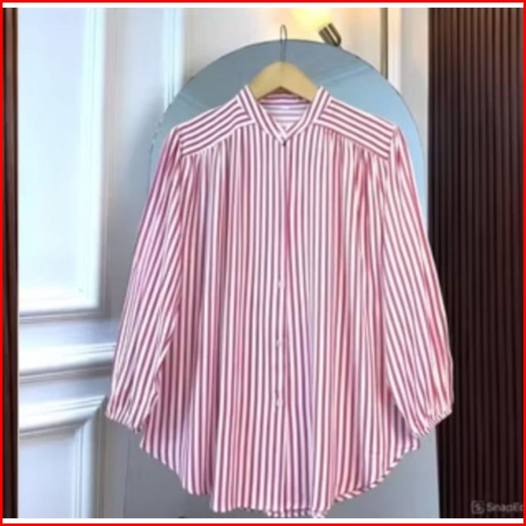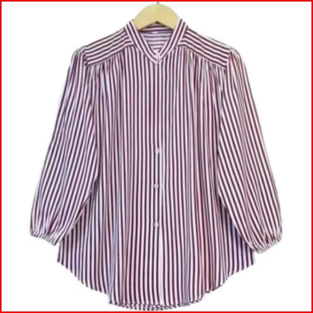 Blouse Kemeja Wanita Terbaru Bahan Rayon Motif Salur Lengan Karet Busui Ferli