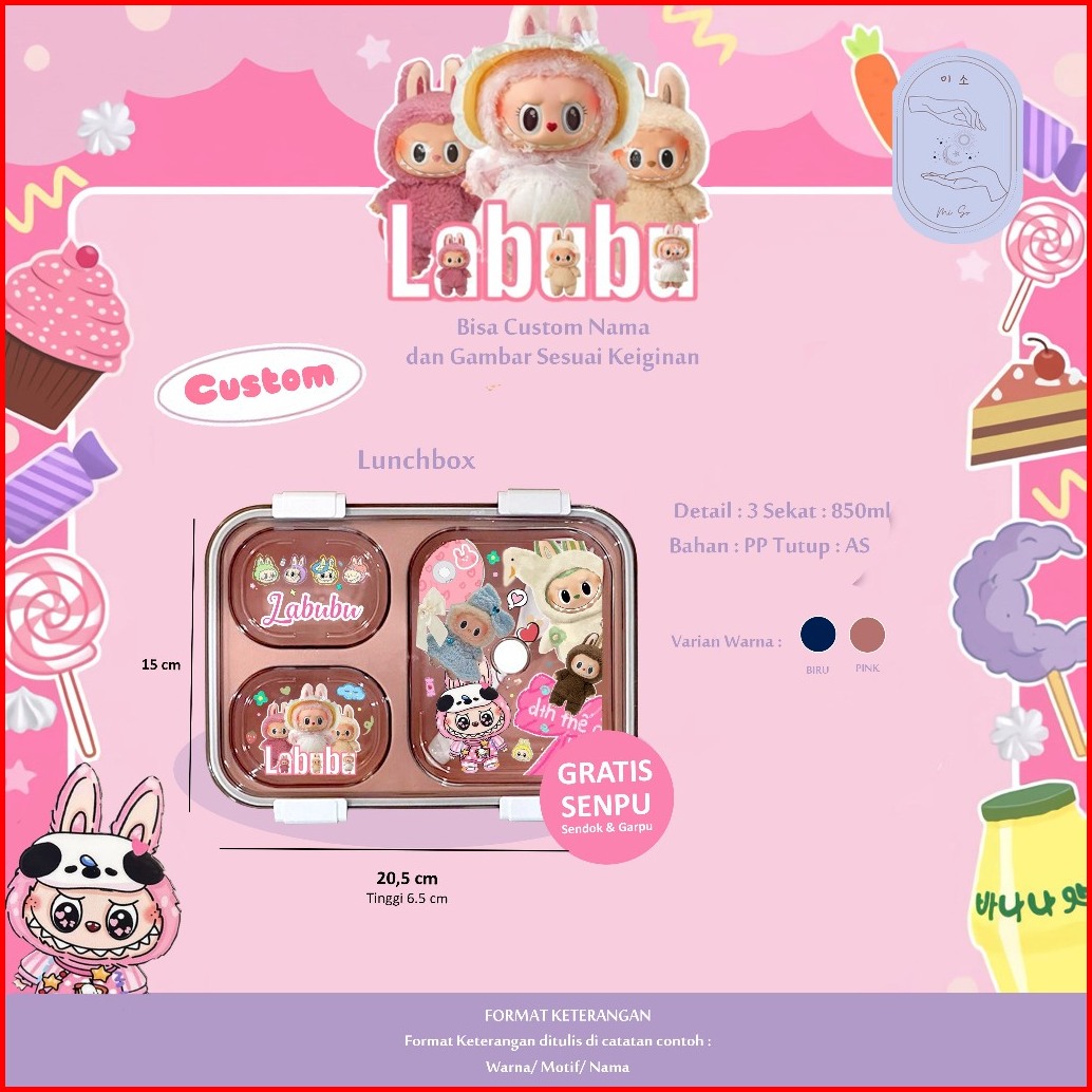 Miso Custom Karakter Labubu Lunchbox 3grid Free 2in1 Sendok Garpu Botol Minum 2in1 Sedot Teguk
