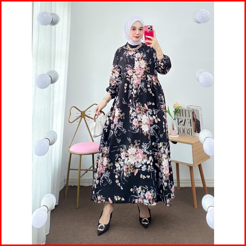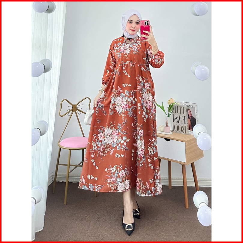 Gamis Remaja Dewasa Mididres Crinkel Motif Lengan Panjang