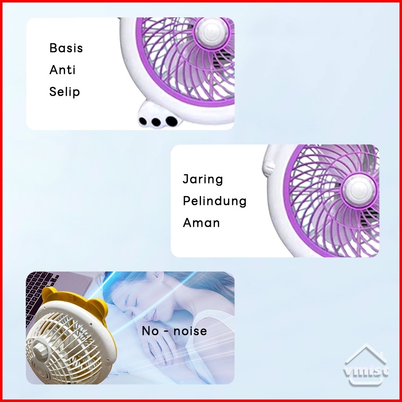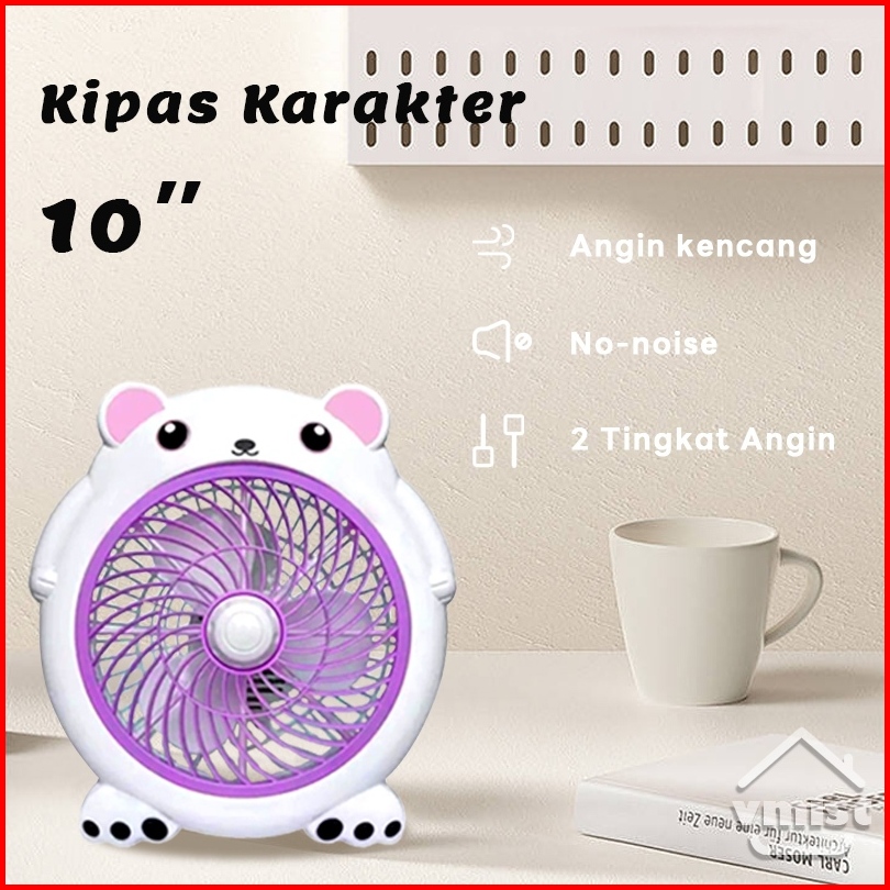 Kipas Angin Meja Karakter Lucu 10 Inch 2 Kecepatan Kipas Angin Duduk Listrik Desk Fan Angin Kuat Senyap Aman