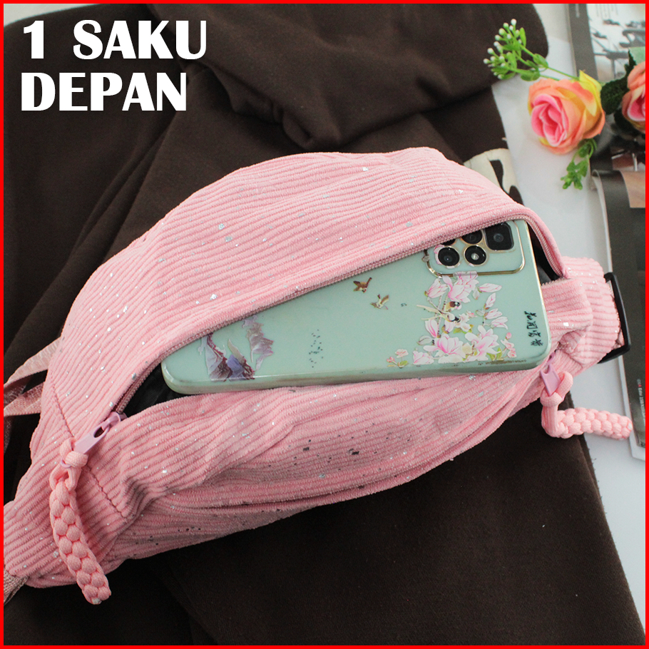 Tas Pinggang Wanita Corduroy Tas Waistbag Fashion Wanita Trendy Terbaru - Zl 003
