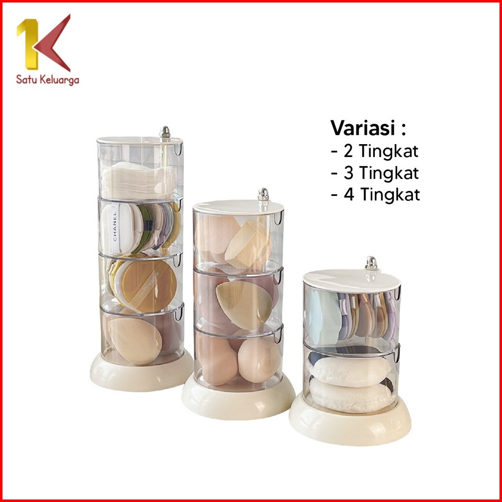 Satu Keluarga Kotak Penyimpanan Spon Puff Kapas Bentuk Bulat Transparan Anti Debu K137 Rak Aksesoris Wanitakotak Tempat