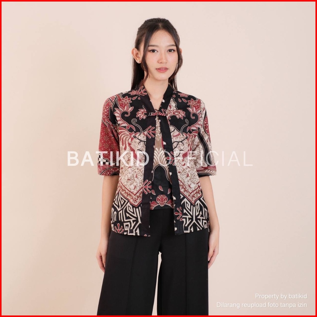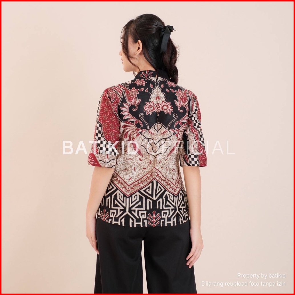 Batikid Atasan Batik Wanita Bahan Katun Alga Maroon Blouse Bolero Kekinian Resleting Belakang