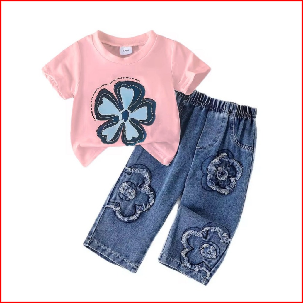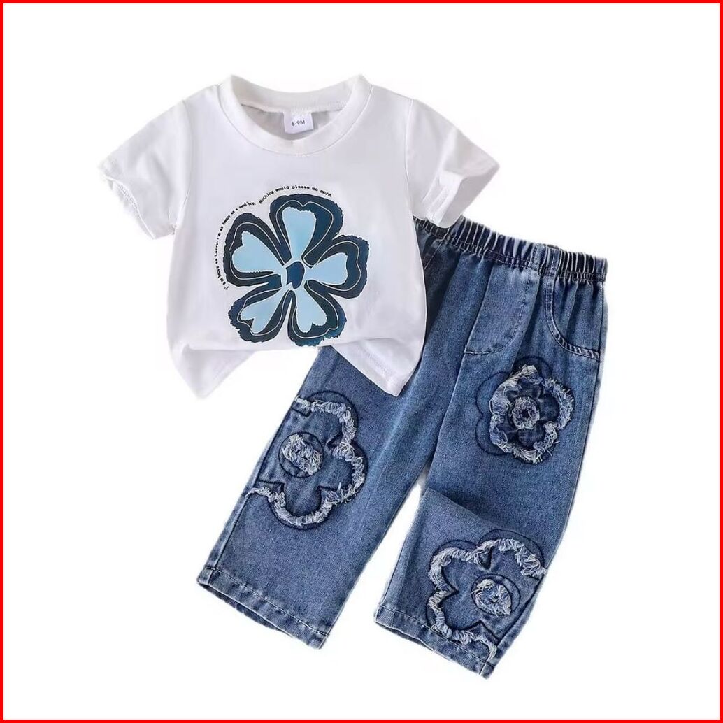 Setelan Jeans Anak Perempuan Usia 1-5 Tahun Motif Bunga