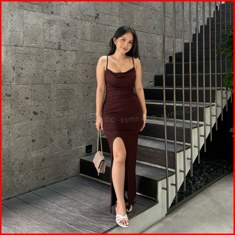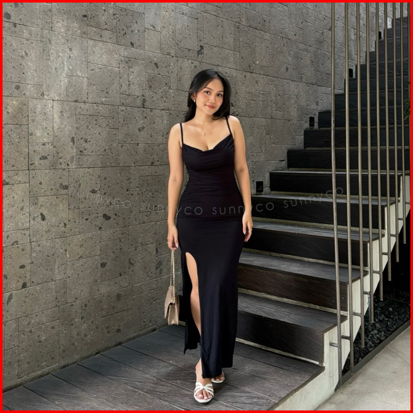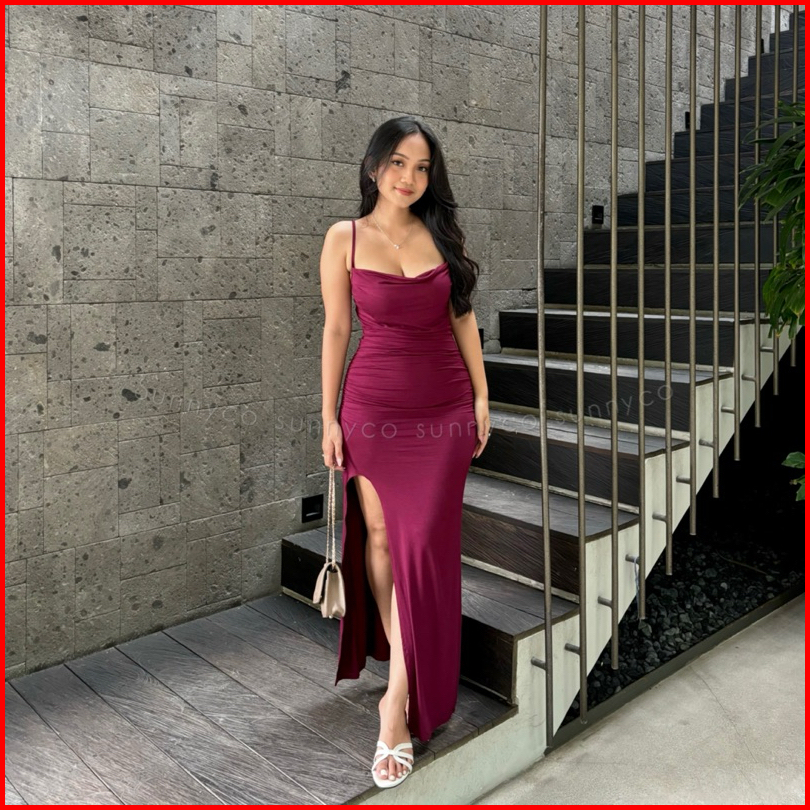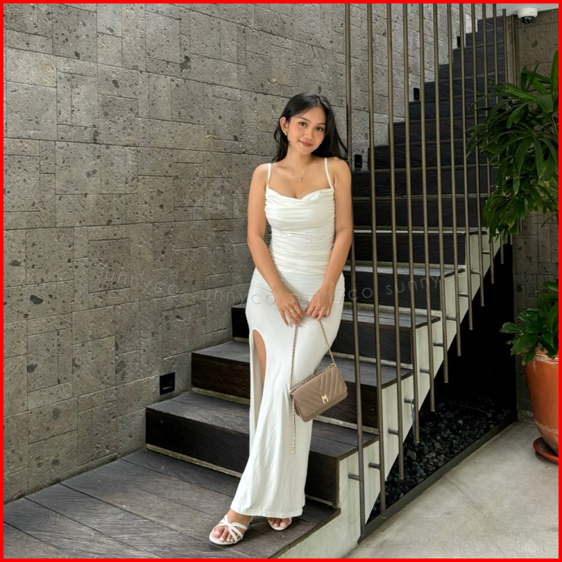 Bianca Dress Gaun Pesta Wanita Dres Tali Rok Belah