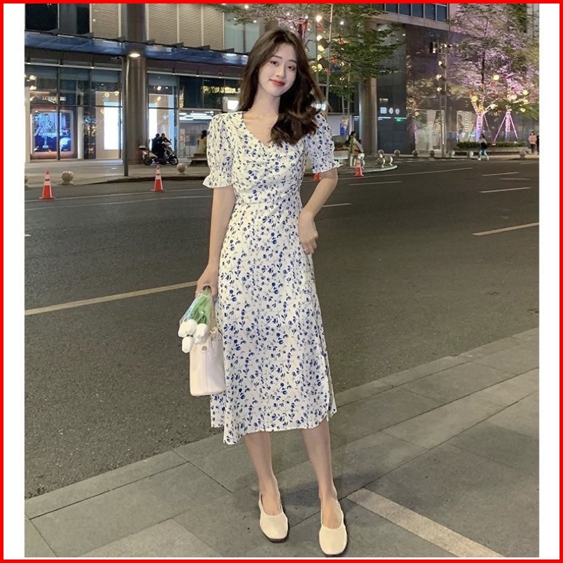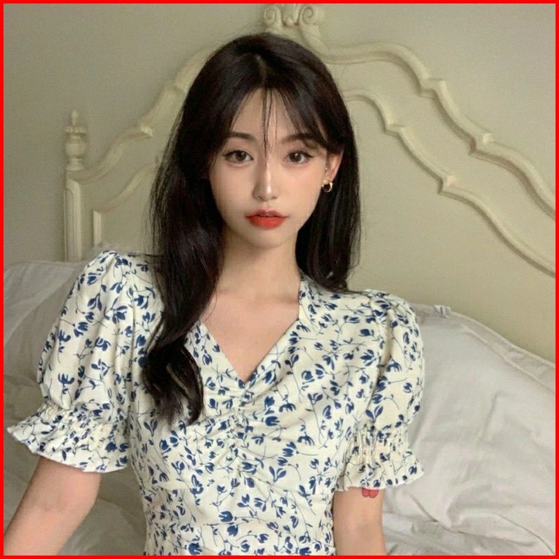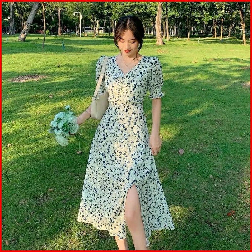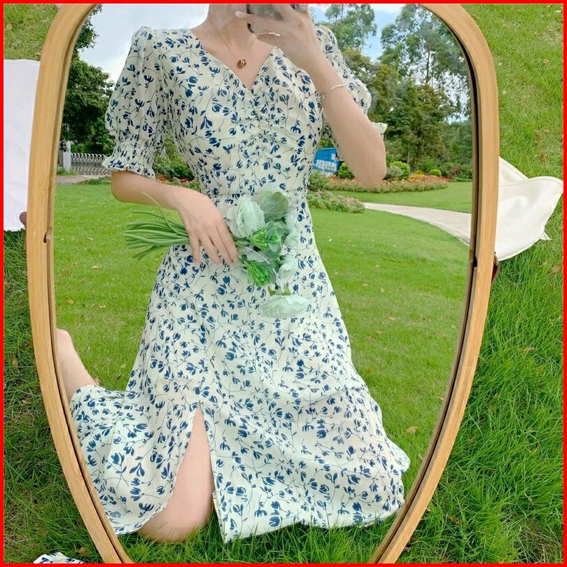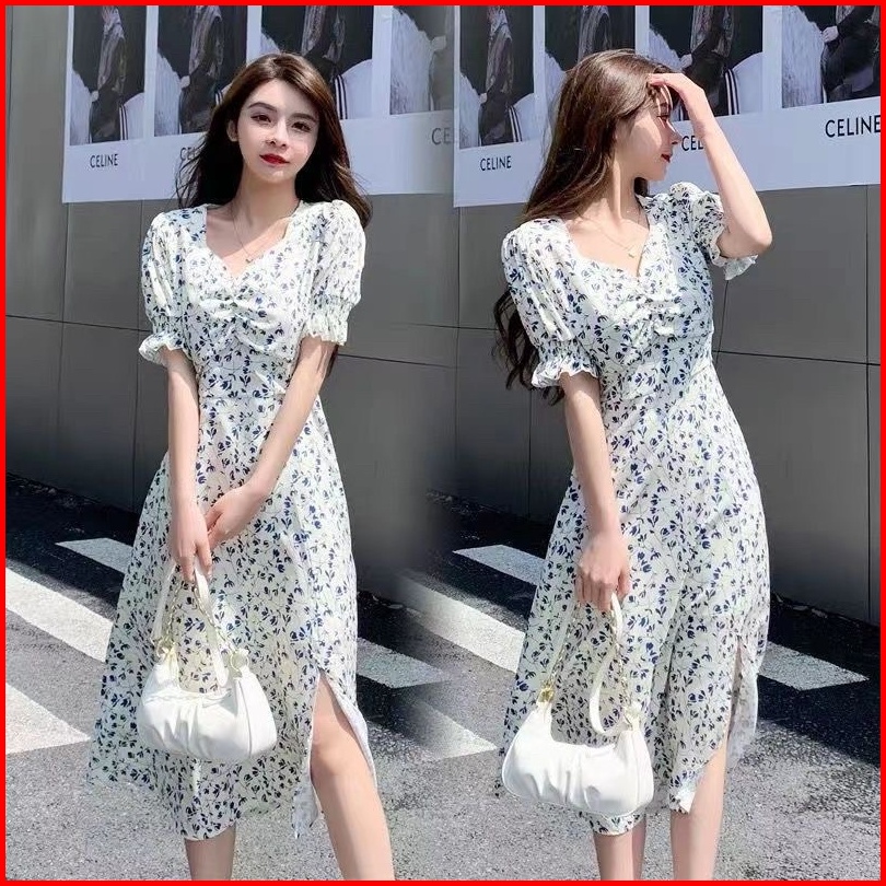 D109 - Tulip Dress Korean Vintage Dress Motif Flower Summer Dress Casual Dress Gaun Wanita Murah Motif Bunga Bergaya Kor