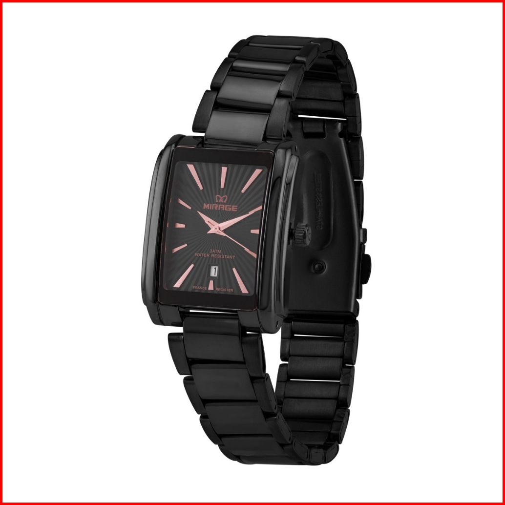 Mirage Jam Tangan Formal Kasual Klasik Segi Analog Wanita Steel Hitam Original Bergaransi 8848 L