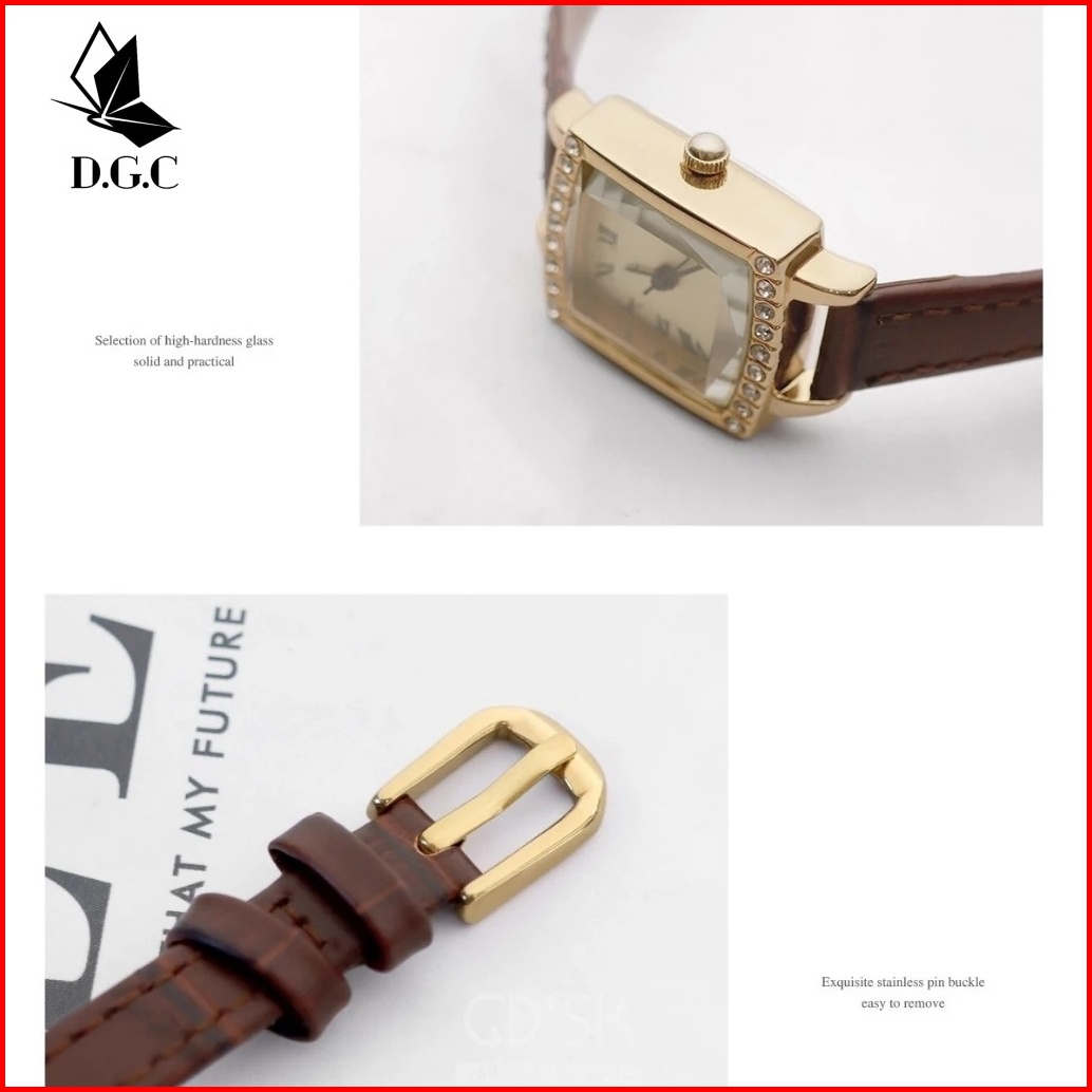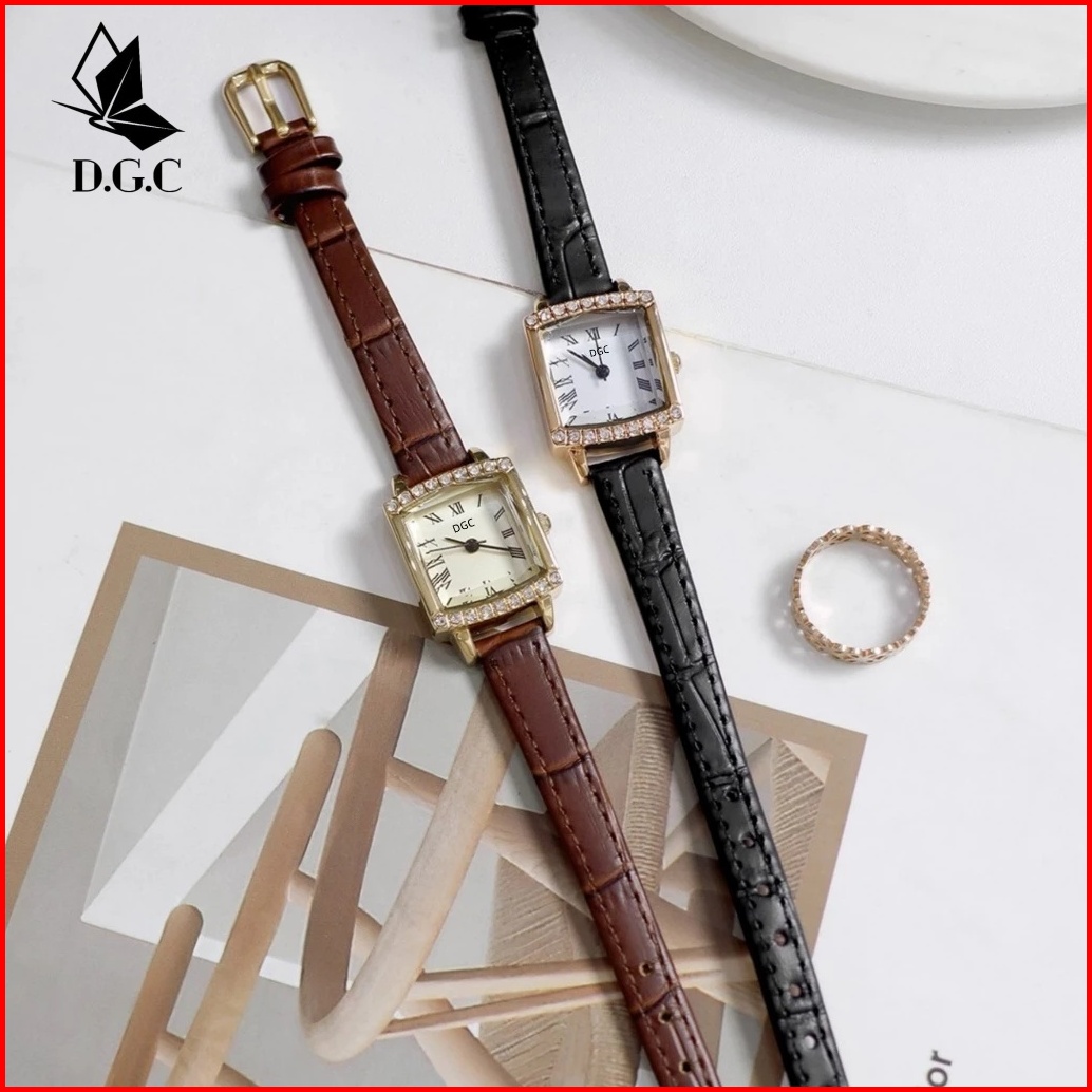 Dgc 10574 Jam Tangan Kecil Wanita Gaya Retro Untuk Bisnis Dial Persegi Berlian Angka Romawi Warna Simple Fashion Korean