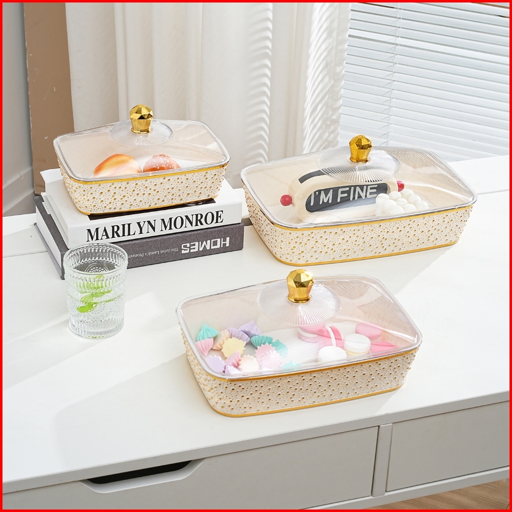 Estetika Nampan Camilan Berbingkai Bergaya Nordik Dengan Tutup Kapasitas Besar Dan Desain Anti Debu Cocok Untuk Meja Kop