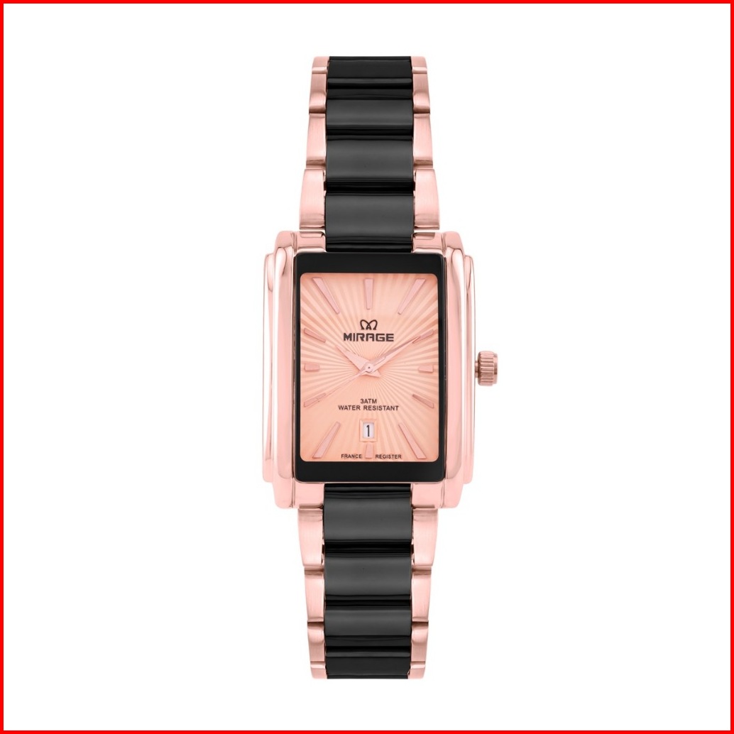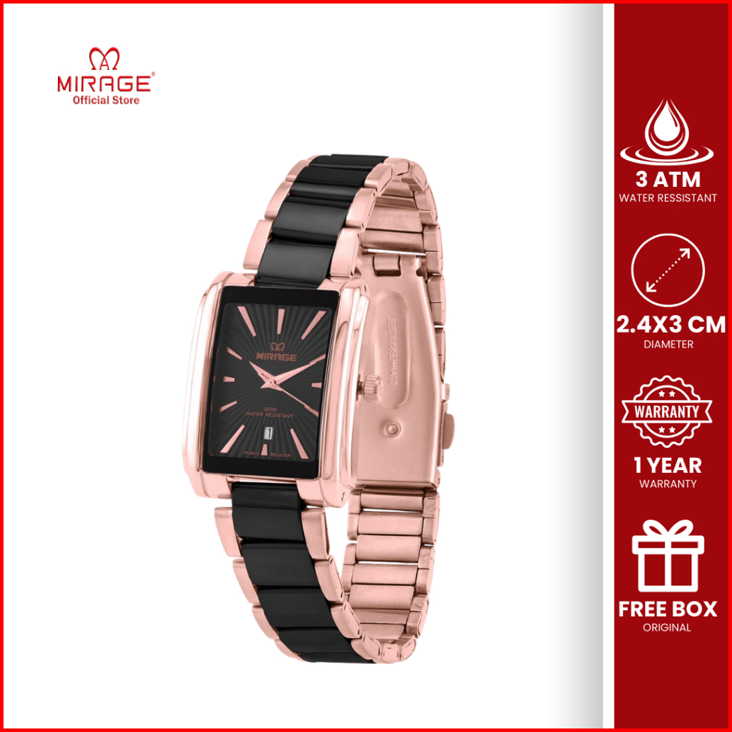 Mirage Jam Tangan Wanita Mewah Anti Air Formal Kasual Steel Original Hitam List Rosegold 8848 L