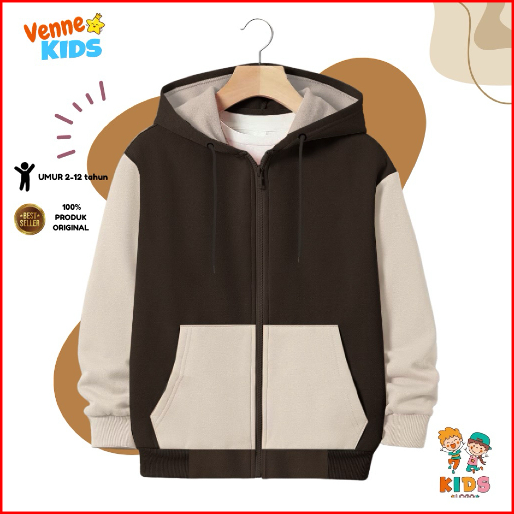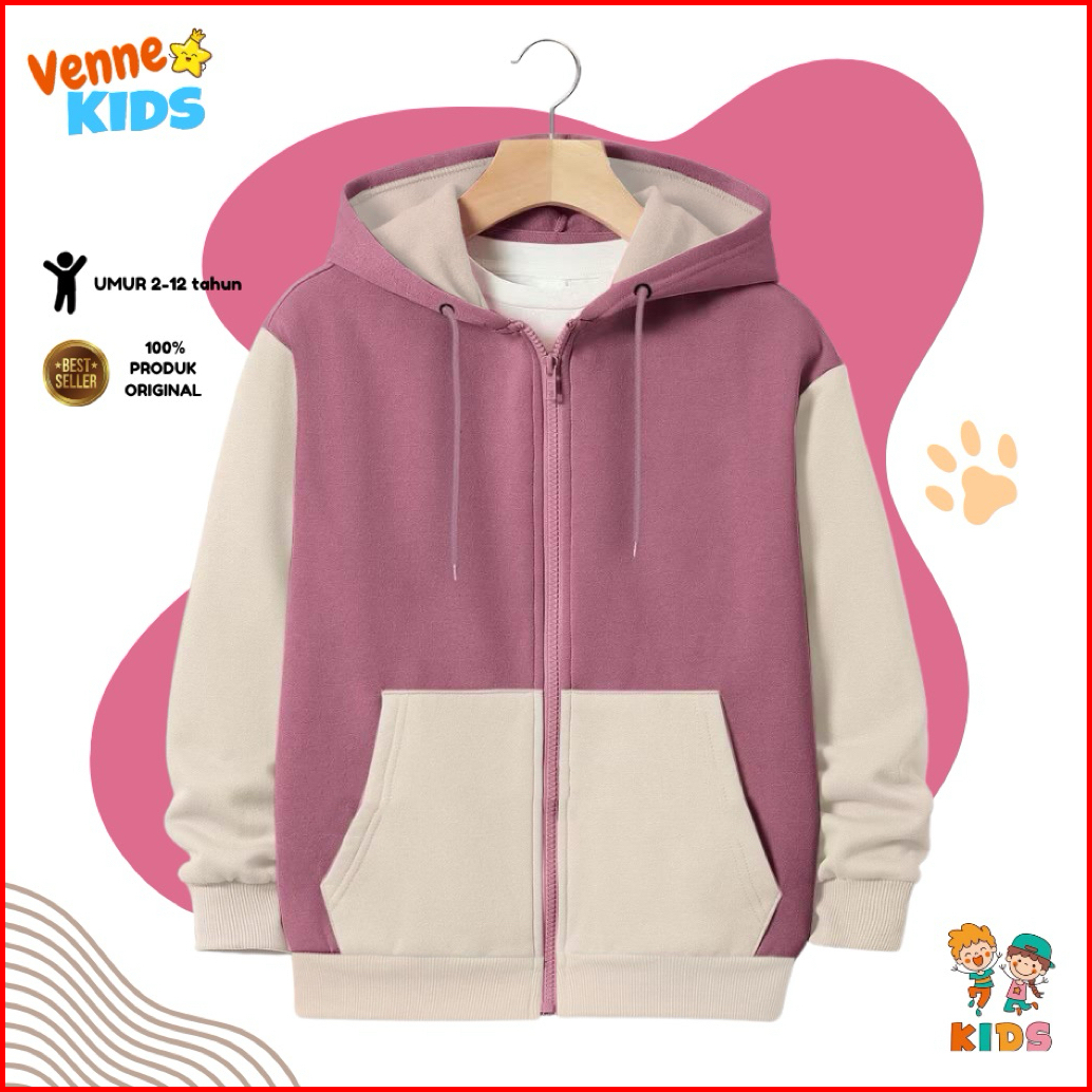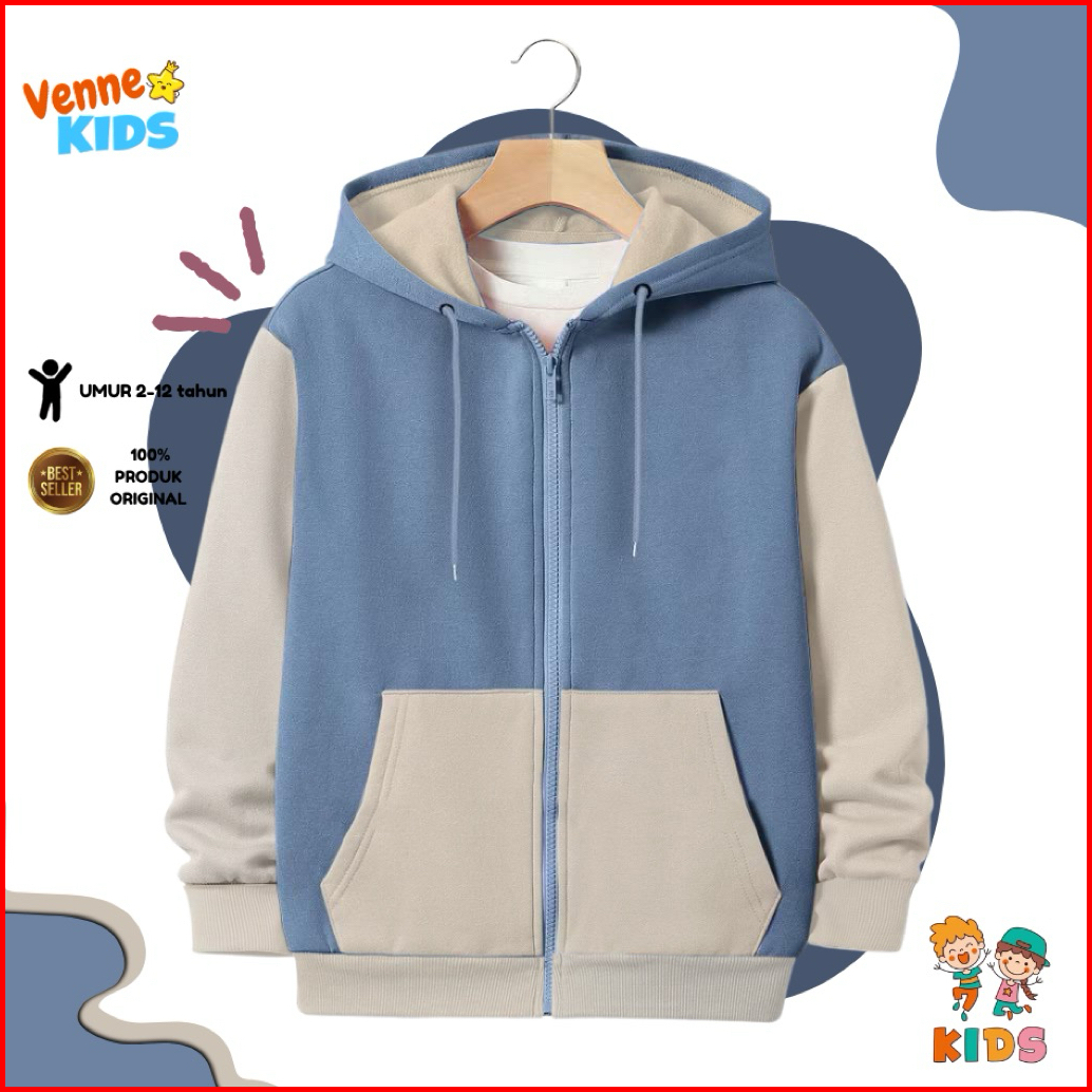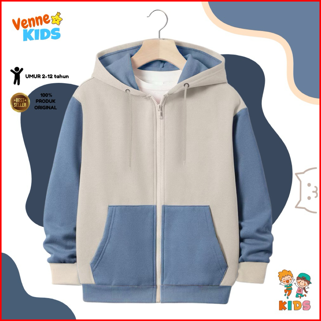 Pakaian Anak Keren Jaket Zipper Polos Anak Laki-laki Perempuan Usia 2-12tahun Tahun Kombinasi Bahan Fleece Tebal Venne