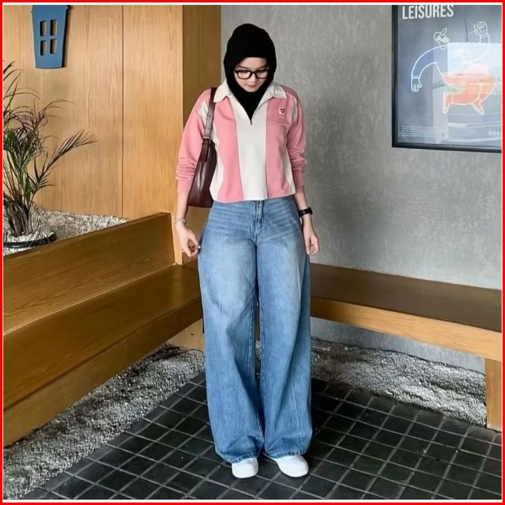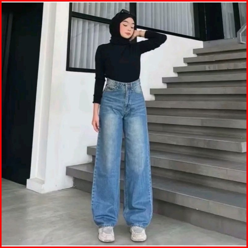 Celana Skena Highwaist Loose Jeans Kulot Gombrong Baggy