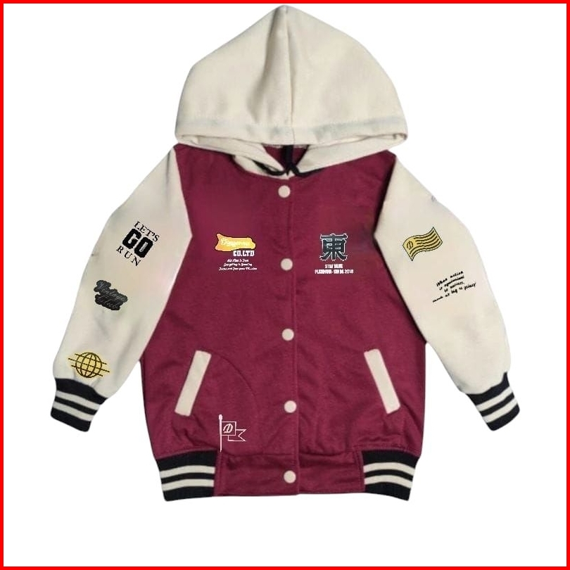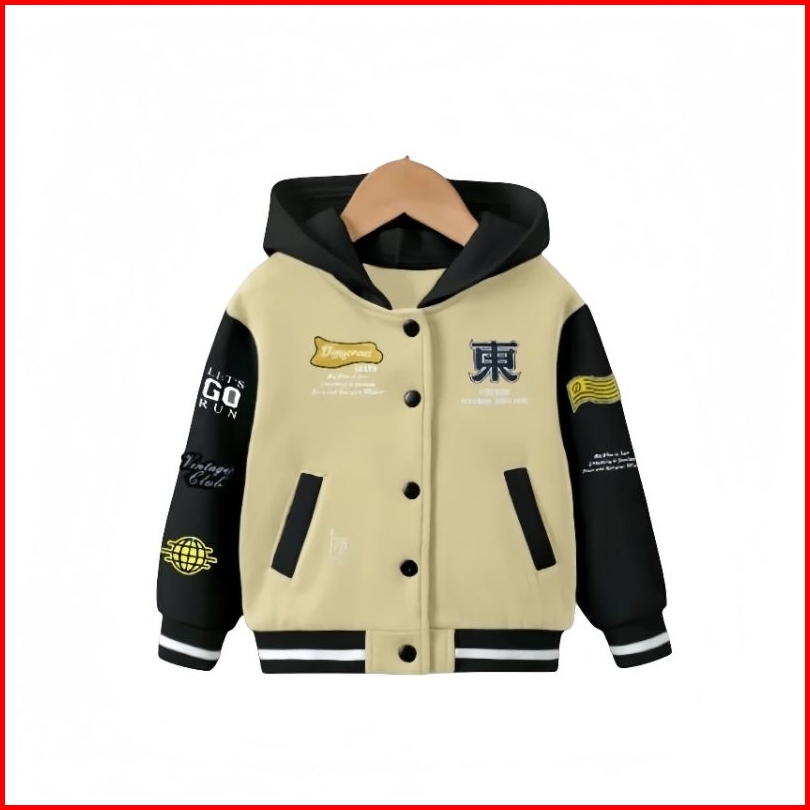 Jaket Varsity Baseball Anak Laki-laki Perempuan Jaket Varsity Hoodie Kupluk Anak Untuk Usia 2-13 Tahun Jaket Anak Topi B