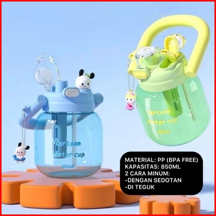 Botol Minum Infused Handle Karakter Panda Sanrio 850ml Transparan Botol Minum 2 Cara Minum Karakter Lucu Botol Minum Vir