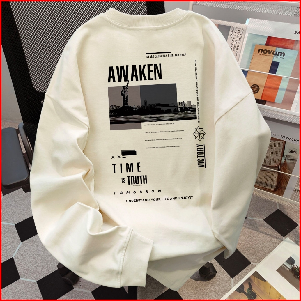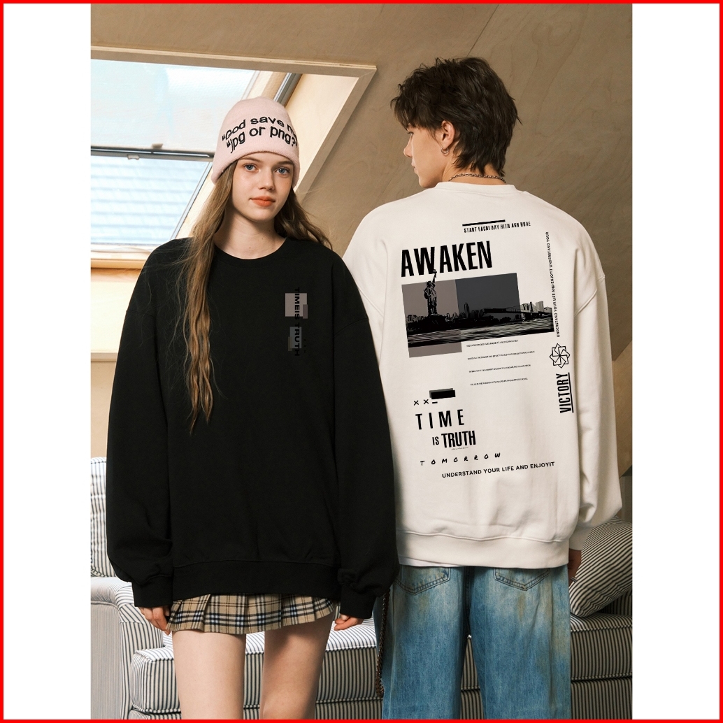 Excetra.id Sweater Cowok Baju Lengan Panjang Pria Oversize Sweater Pria Poster Foto Hitam Putih Crewneck Pria Premium Lo