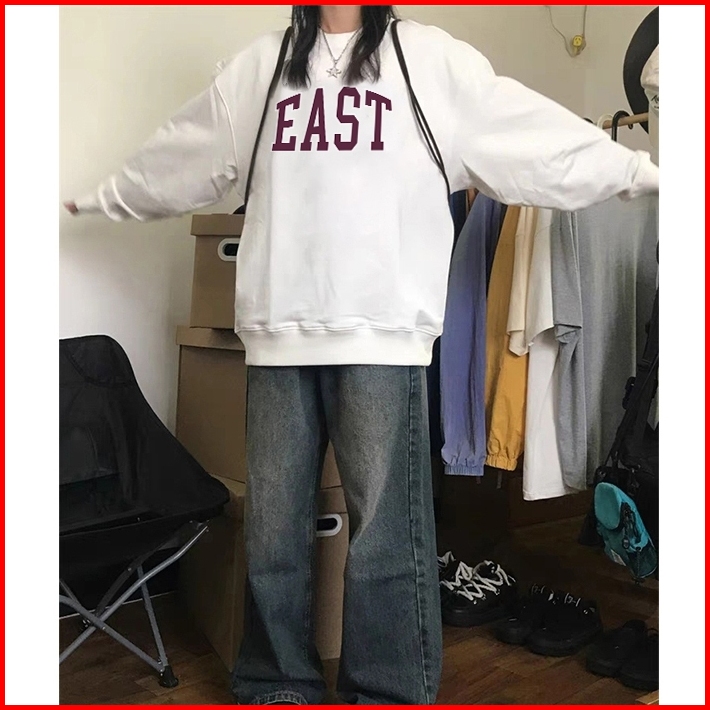 Forteid Sweater Lengan Panjang Oversized Street Style Korean Style Switer Wanita Oversize Kaos Pencetakan East Printing