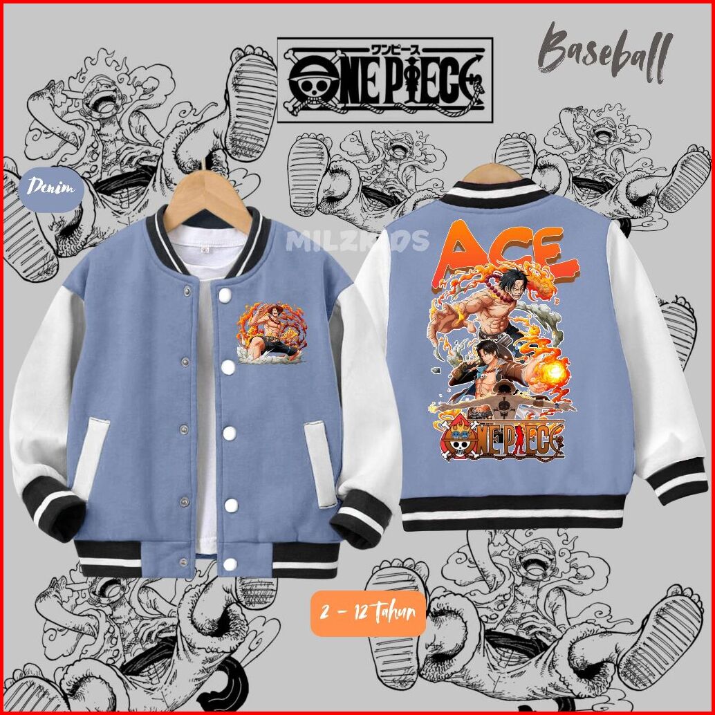 Jaket Varsity Baseball Anak Luffy Ace Fire Anak Usia 1 - 13 Tahun Jacket Sweater Anak Laki Laki