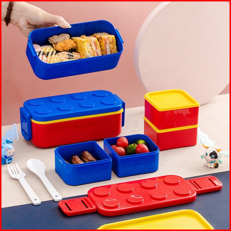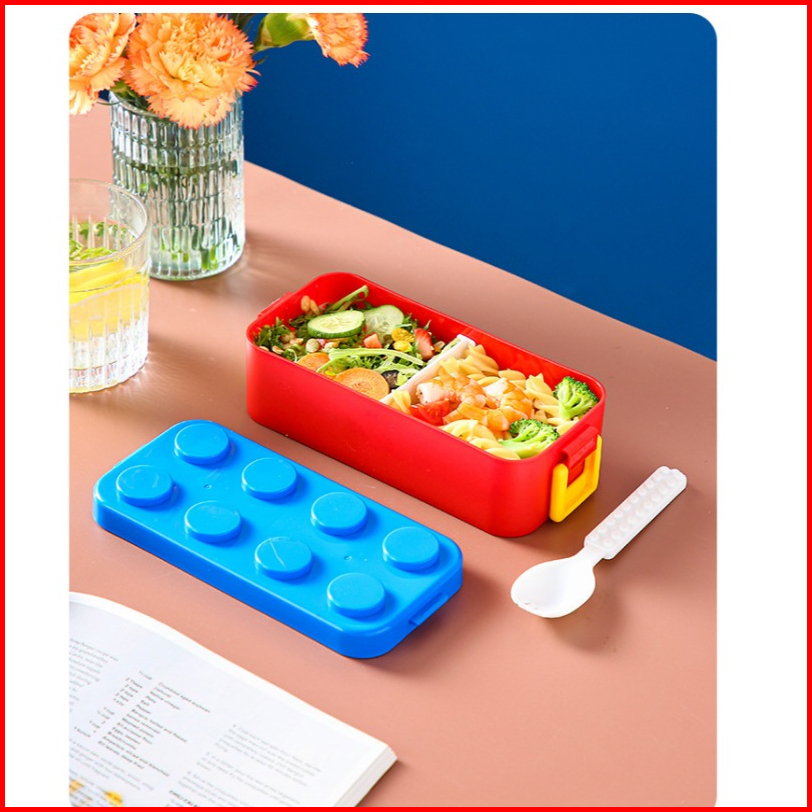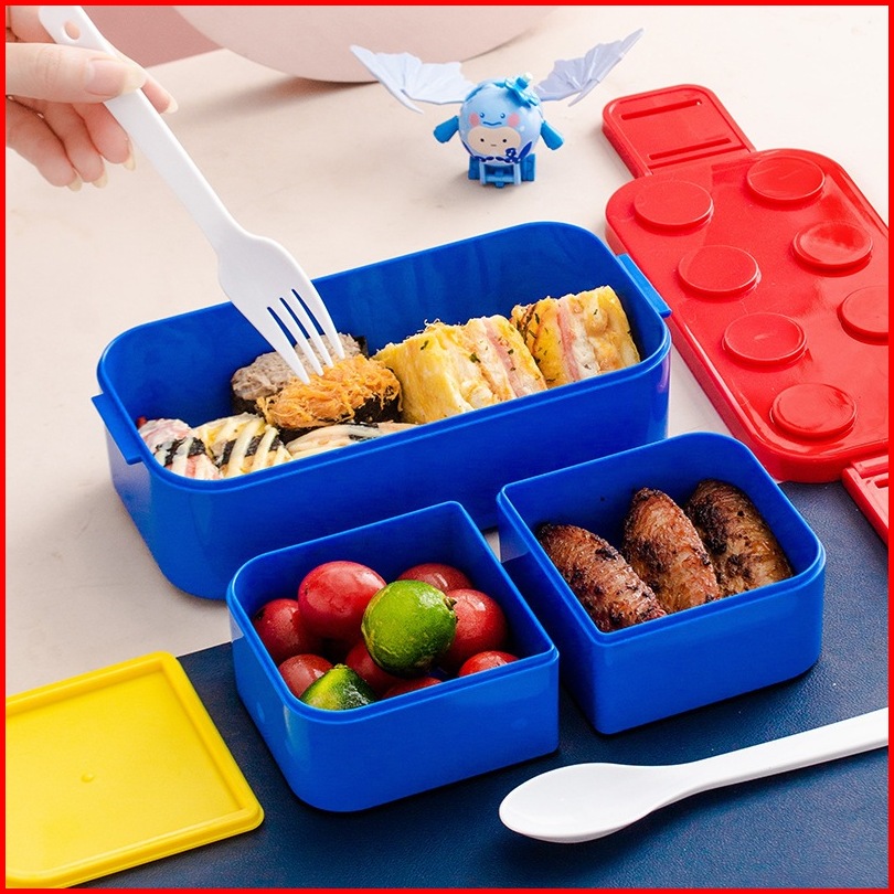 Lunch Box Kotak Makan 2 Susun Bentuk Lego Terbaru Kapasitas 1050ml Free Sendok Anti Tumpah Kode A912
