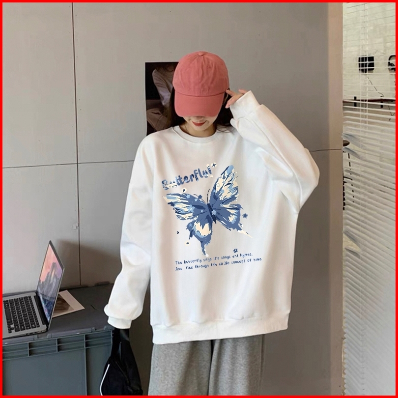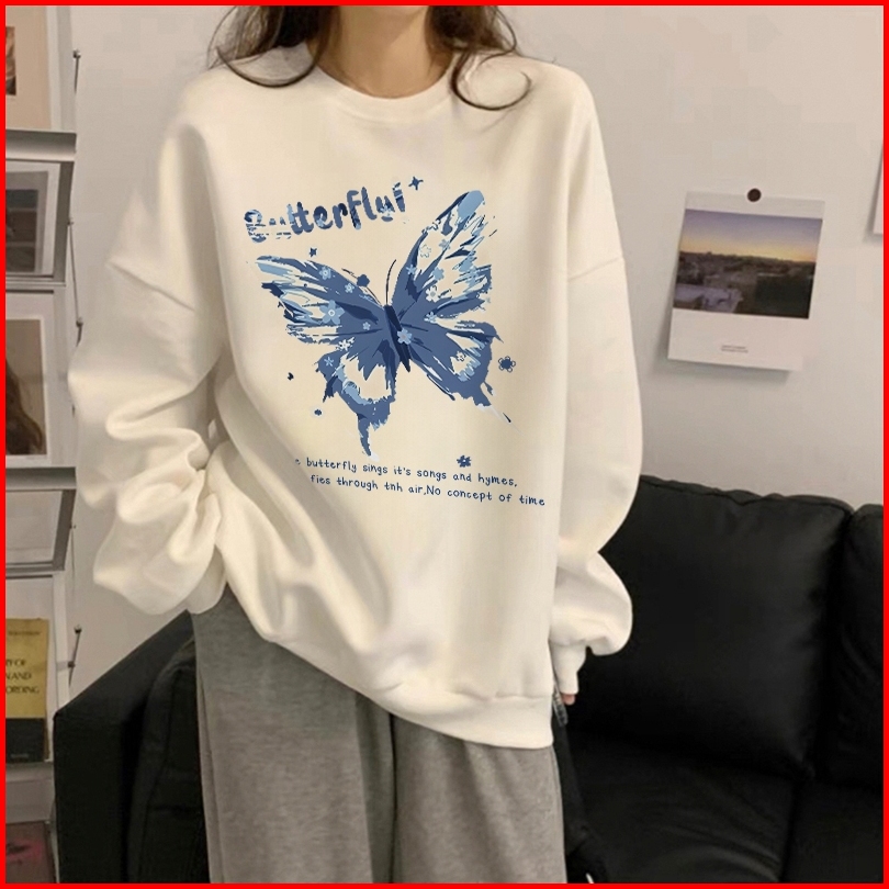 Forteid Sweater Lengan Panjang Oversized Street Style Korean Style Switer Wanita Oversizecetakan Cetakan Kupu-kupu Mode