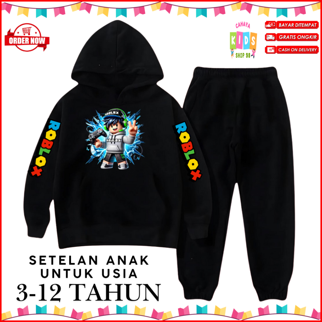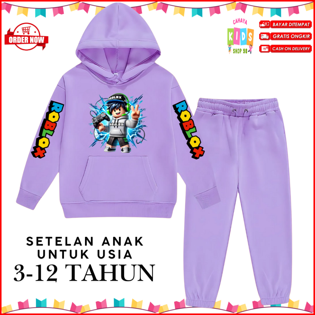 Setelan Baju Hoodie Anak Laki Dan Perempuan Motif Roblox Untuk Usia 3-12 Tahun